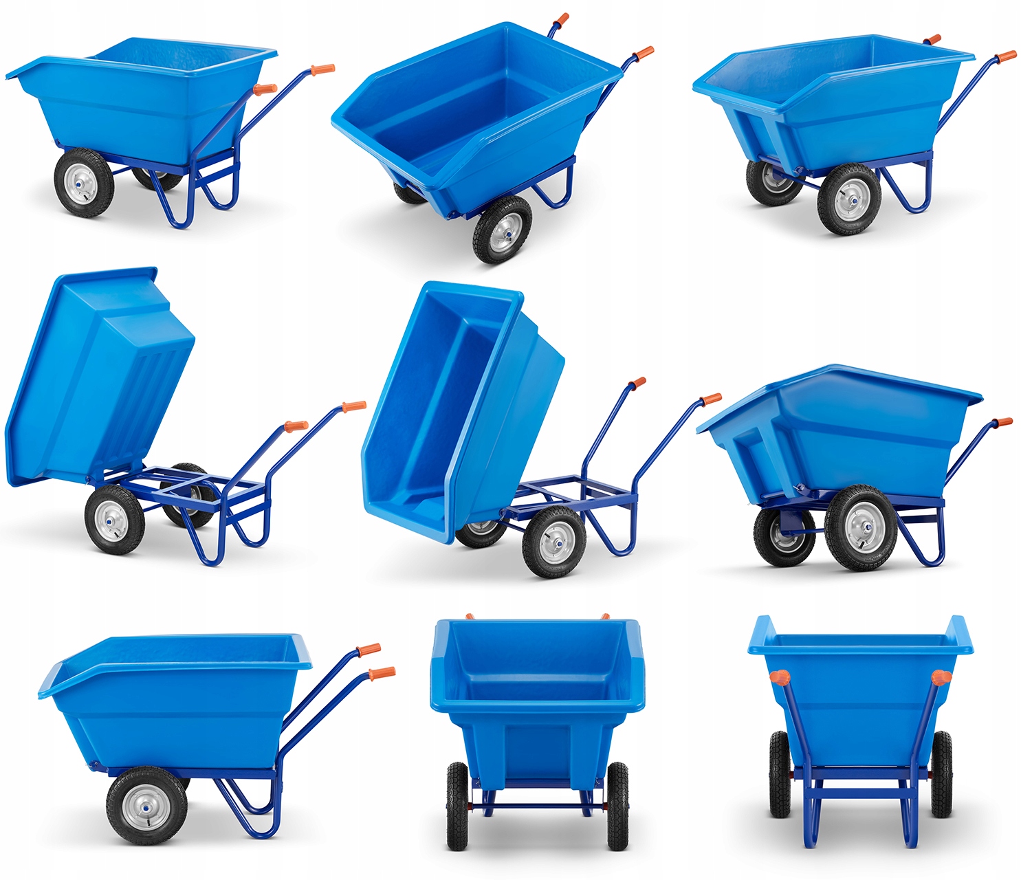 Сталева люлька з місткою пластиковою чашеюз об'ємом бункера 300 літрів і вантажопідйомністю до 300 кілограм - чудовий інструмент для щоденного використання. Це безцінний партнер як на будівельному майданчику, так і в домогосподарстві, компанії чи фермі. Завдяки спеціальній зварній конструкції всієї рами колесо залишається жорстким і міцним, що дуже важливо в повсякденному використанні.