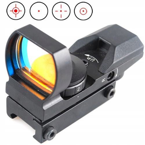 Удосконалена модель відкритого коліматора зі змінними точками наведення. Цей невеликий коліматор ідеально підходить для штурмових і параснайперських гвинтівок, а також пневматичних гвинтівок.Міцна конструкція і адаптований до рейки 11.Коліматор дозволяє прицілюватися обома очима, що сприяє швидкому захопленню цілі, переглядаючи всю зону цілі. Коліматор живиться від літієвої батареї CR2032 3V, має повне регулювання положення прицільної сітки та її яскравості (0-7), червоне підсвічування прицільної сітки та 4 види доступних прицілів.