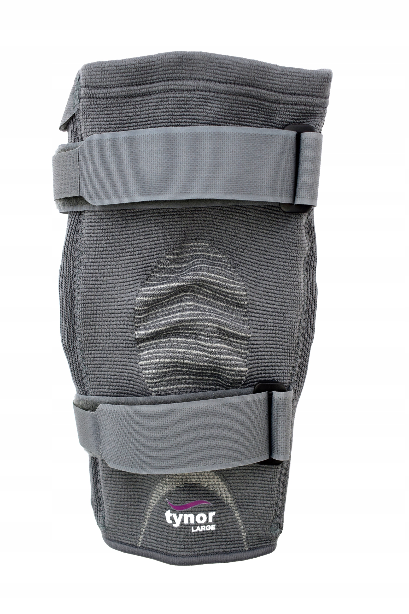 Поліцентричний шарнірний бандаж — це ефективна конструкція, яка забезпечує стиснення навколо коліна та підтримку бічної шини, одночасно дозволяючи нормальне згинання коліна.