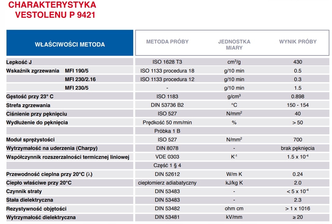 • щільність при 23°C згідно DIN 53479 – 0,898 г/см3,