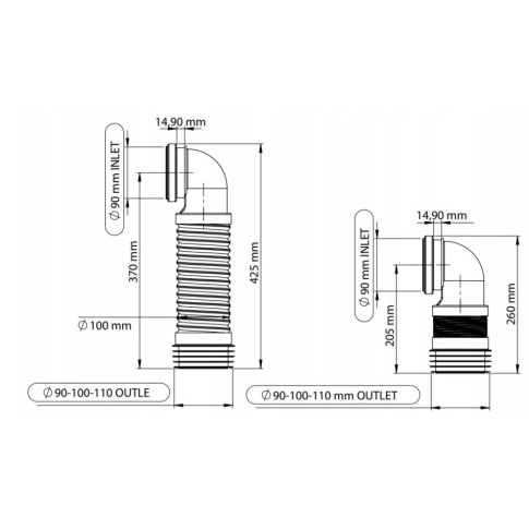 - Вихід: 90 - 110 мм b> із фланцевим ущільненням