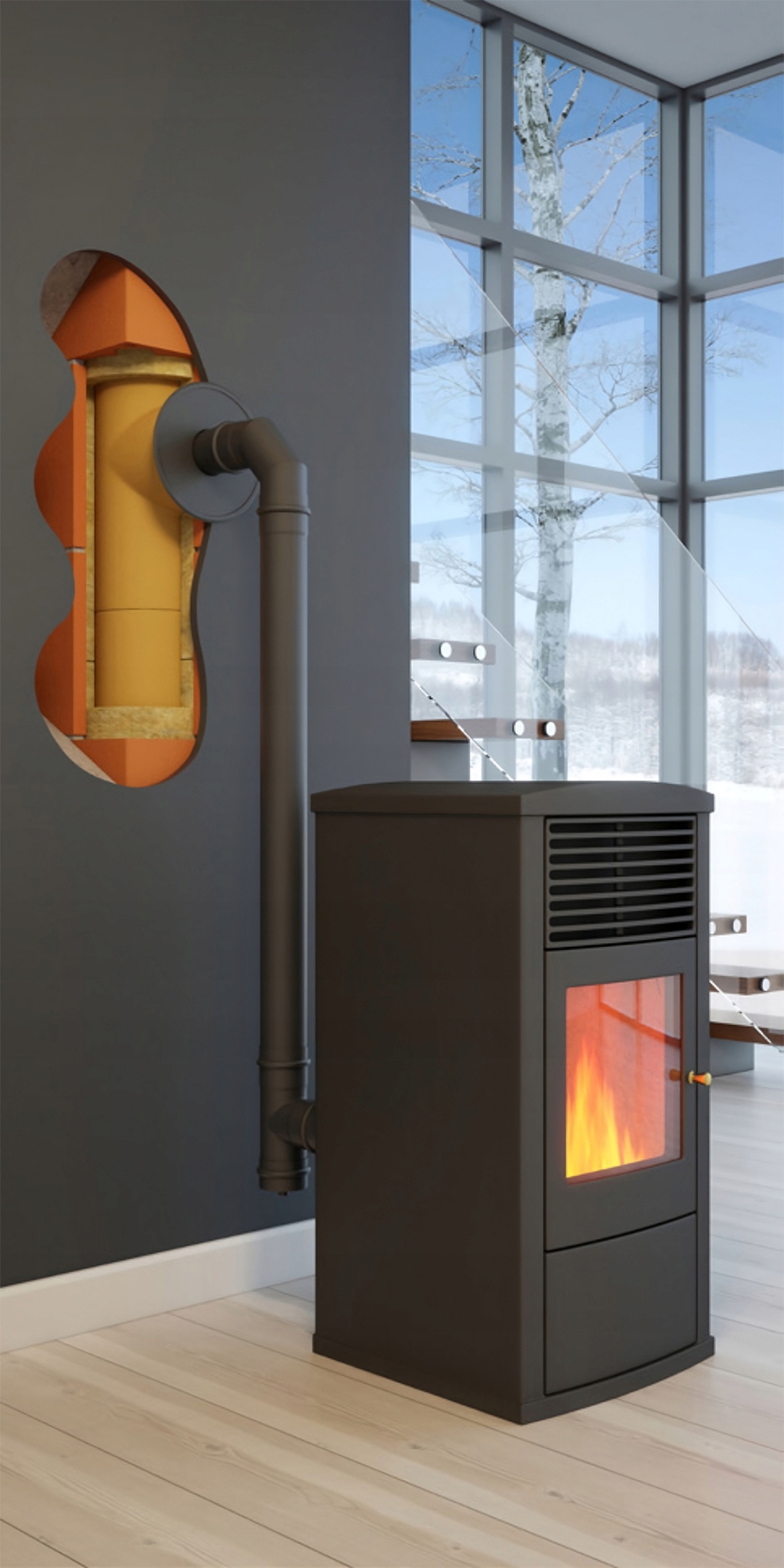 ✔️ Забезпечує ефективне видалення вихлопних газів із печей на пелетах, забезпечуючи чисте та безпечне використання системи.