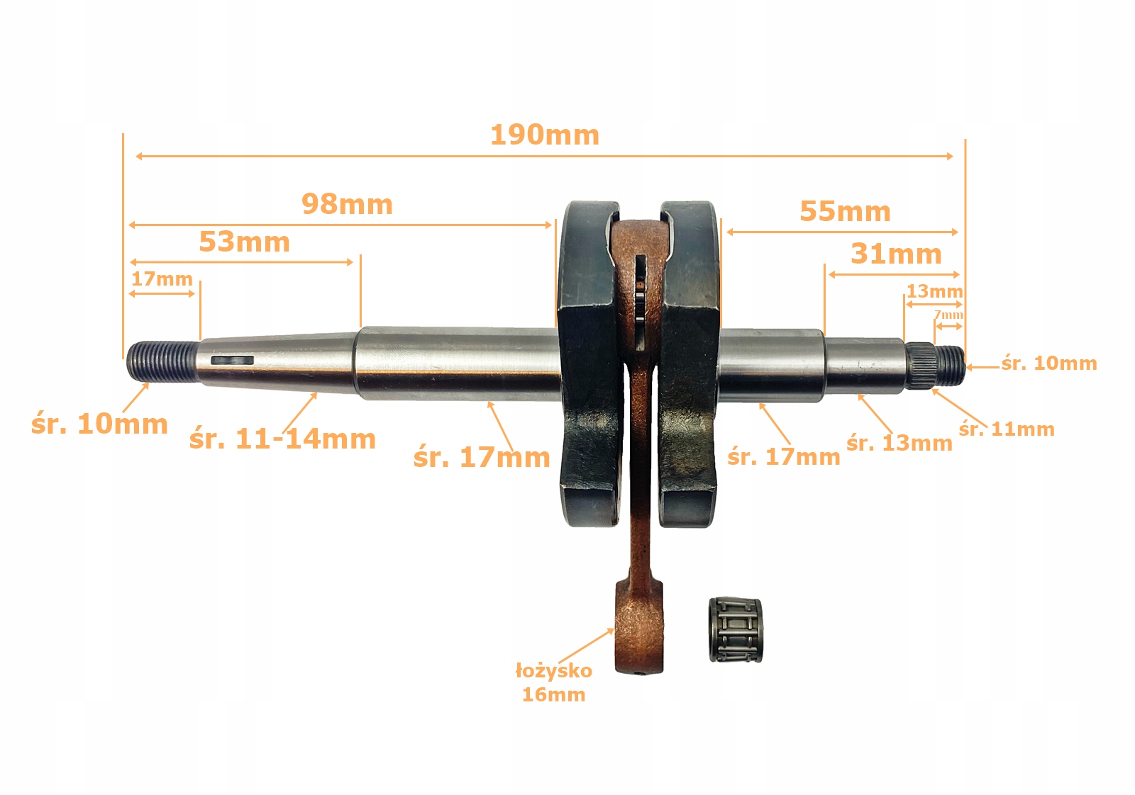 Колінчастий вал з матеріалів найвищої якості. Якість виготовлення гарантує тривале і безвідмовне використання. Вал є ідеальною заміною оригіналу, він відбалансований і готовий до установки. Поставляється з голчастим підшипником.