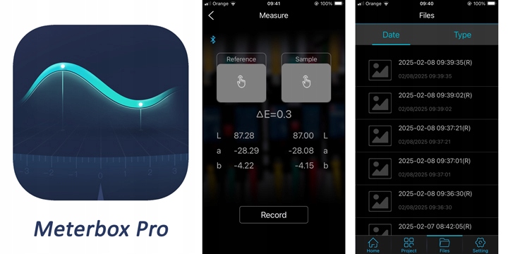 Колориметр має вбудовану функцію Bluetooth, завдяки якій ви можете легко підключити колориметр із смартфоном або планшетним ПК, щоб швидко та бездротово надсилати заходи. Безкоштовна програма Meterbox Pro доступна у версіях Android та iOS:
