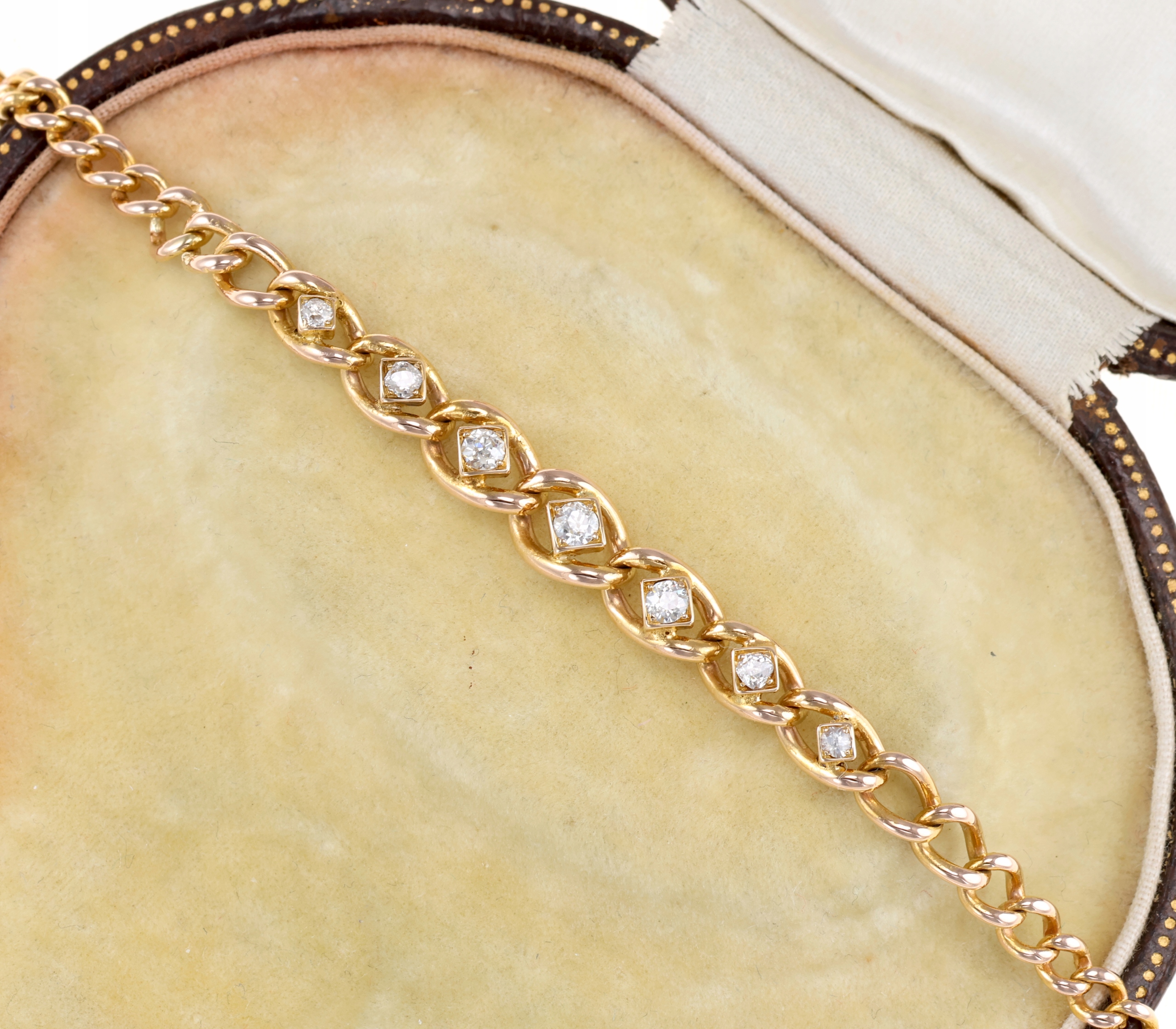 Предметом продажу є колишній золотий браслет з голландськими клеймами 1864 року - 1906. Браслет прикрашений діамантами старовинного огранювання загальною вагою 0,37 карат і параметрами Si/G-I. Оснащений застібкою для ящика з додатковим захистом. Прекрасний предмет, якому понад 100 років.