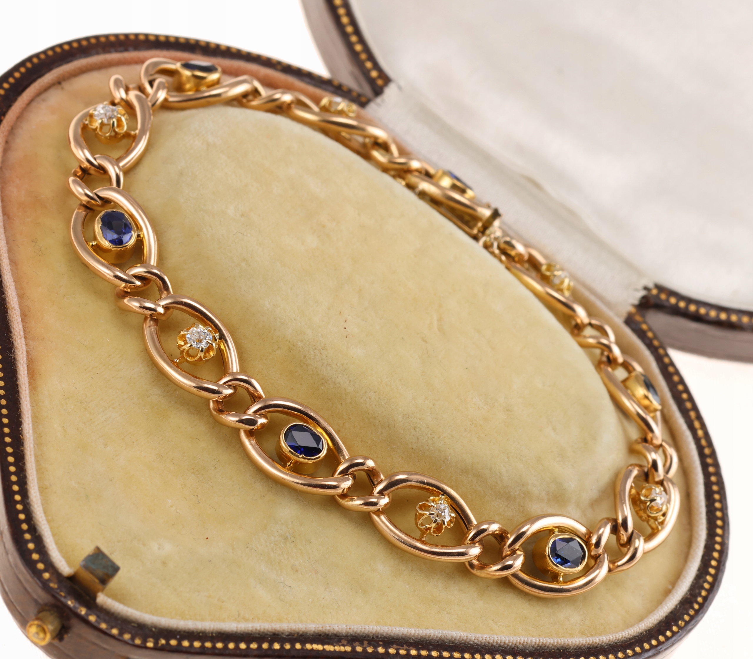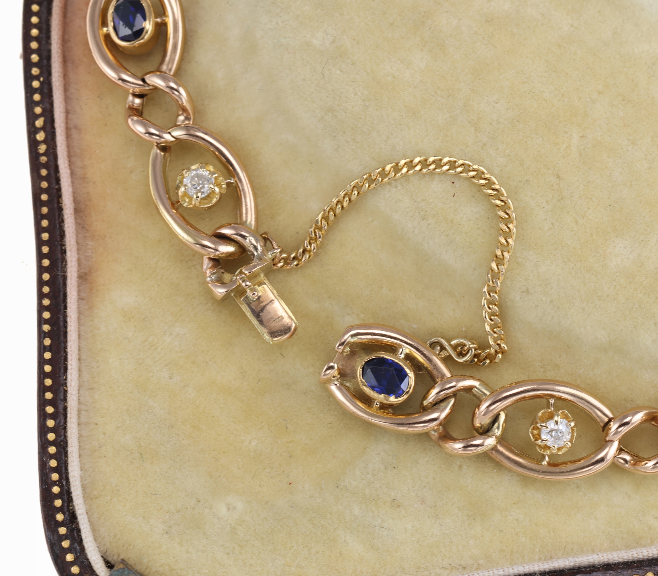 - золотистий репетиція 585, а клітини оформляються за допомогою оперативних діапазонів у 16/16/16 з загалом, а 0. сапфір. Браслет кріпиться з застібкою для ящиків із додатковим захисним ланцюгом.