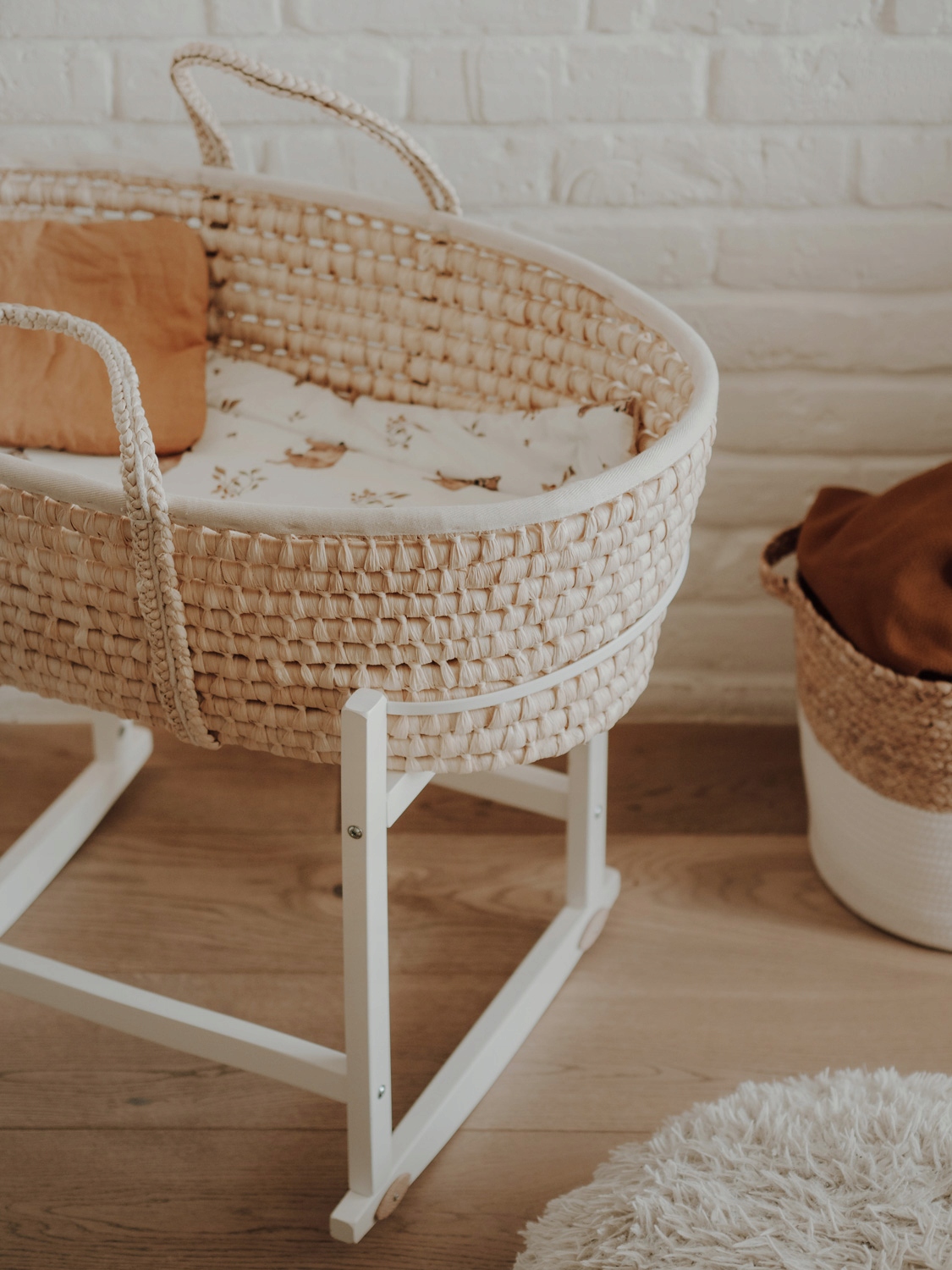 - Люльки для кошика Moses - білі, колір натурального дерева, лаковані