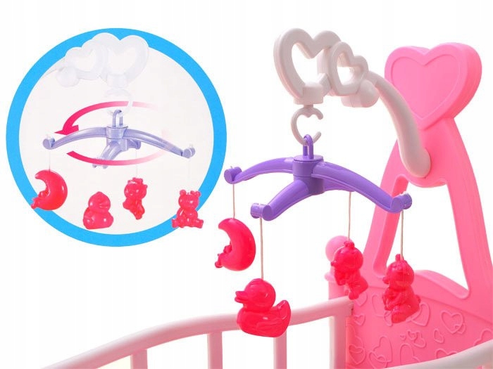 Чарівна колиска, красиво прикрашена аксесуарами - це мрія для кожної майбутньої матері, батька. Крім того, колиска має карусель, яка включена, та аксесуари для годування дитини. Повний компактний набір працюватиме в кожній маленькій дитячій кімнаті. Завдяки тому, що колиска довга, лялька вписується в неї, ведмідь з висотою до 45 см! З раннього віку дитина навчиться делікатесу та догляду за близькими. Іграшка розвиває ручні навички та уяву. Він викладає турботу, відповідальність та порядок. Літть дуже ретельно і естетично зроблено. Набір включає: