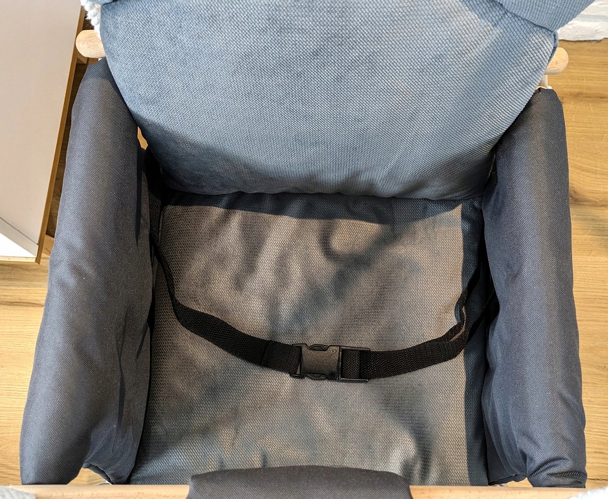 Гойдалка виготовлена з оксамитової тканини, це приємний на дотик плюш. Наші гойдалки мають посилене сидіння. Їх можна легко зняти для прання.