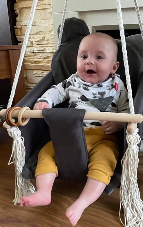 Гойдалка виготовлена з оксамитової тканини, це приємний на дотик плюш. Наші гойдалки мають посилене сидіння. Їх можна легко зняти для прання.