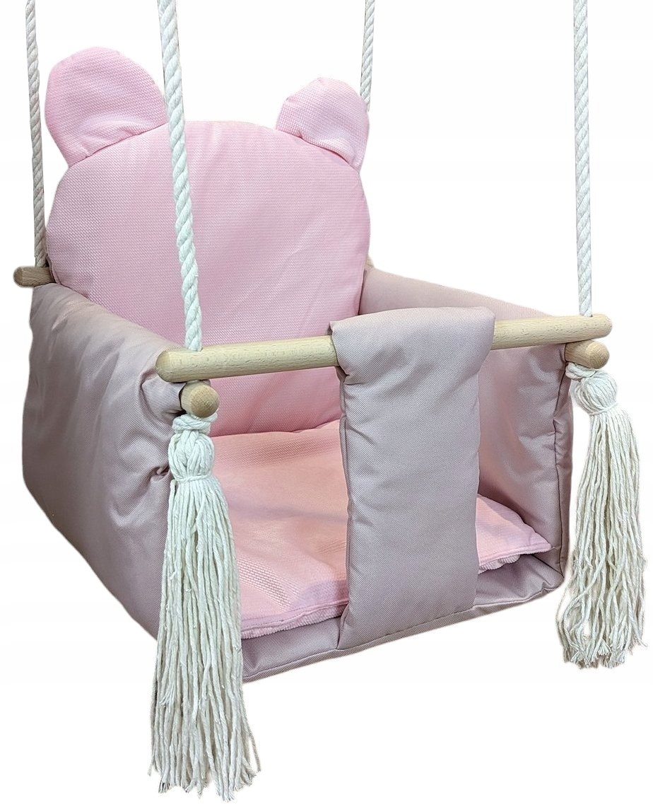 У набір входить подушка/вкладиш із симпатичними вушками та боками для забезпечення максимального комфорту під час гри. Гойдалки підвішені на 3-ниткових кручених бавовняних мотузках. Довжина мотузки 1,9 м, ідеально підходить для кімнат висотою 2,6 м. Міцна мотузка гарантує безпеку нашої дитини.