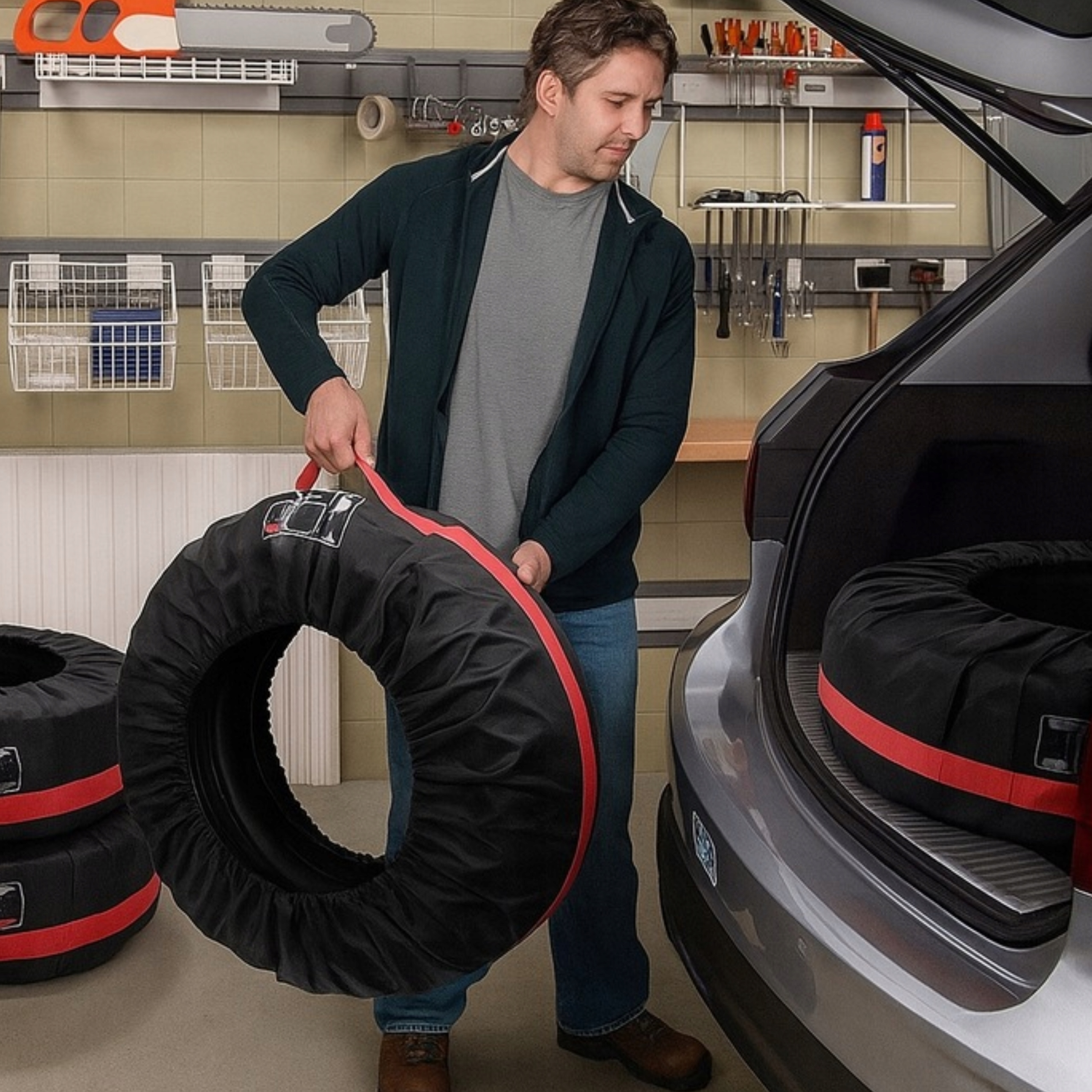 ➡️ Зберігання комплекту коліс поза сезоном - ідеально підходить для гаража, підвалу чи домашнього сховища
