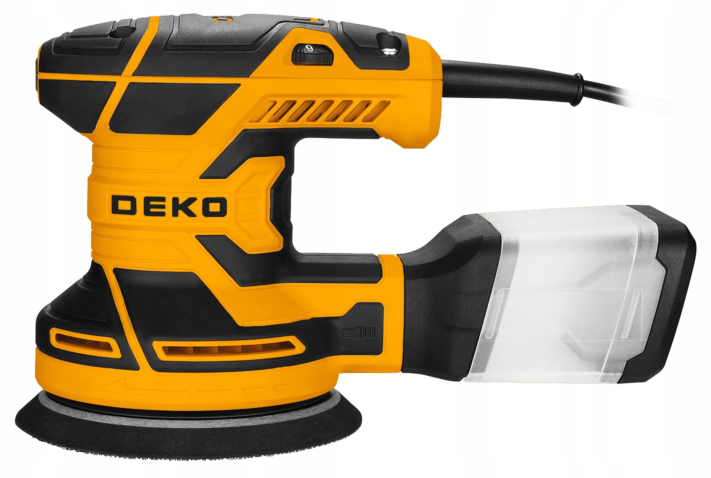Система водовідведення пилу в ексцентричній шліфувальній машині deko допомагає зберегти чистоти на робочому місці . Завдяки побудованому -в контейнері для пилу , все забруднення, що виникає під час шліфування, ефективно збирається, що мінімізує безлад і забезпечує більш комфортні умови праці.