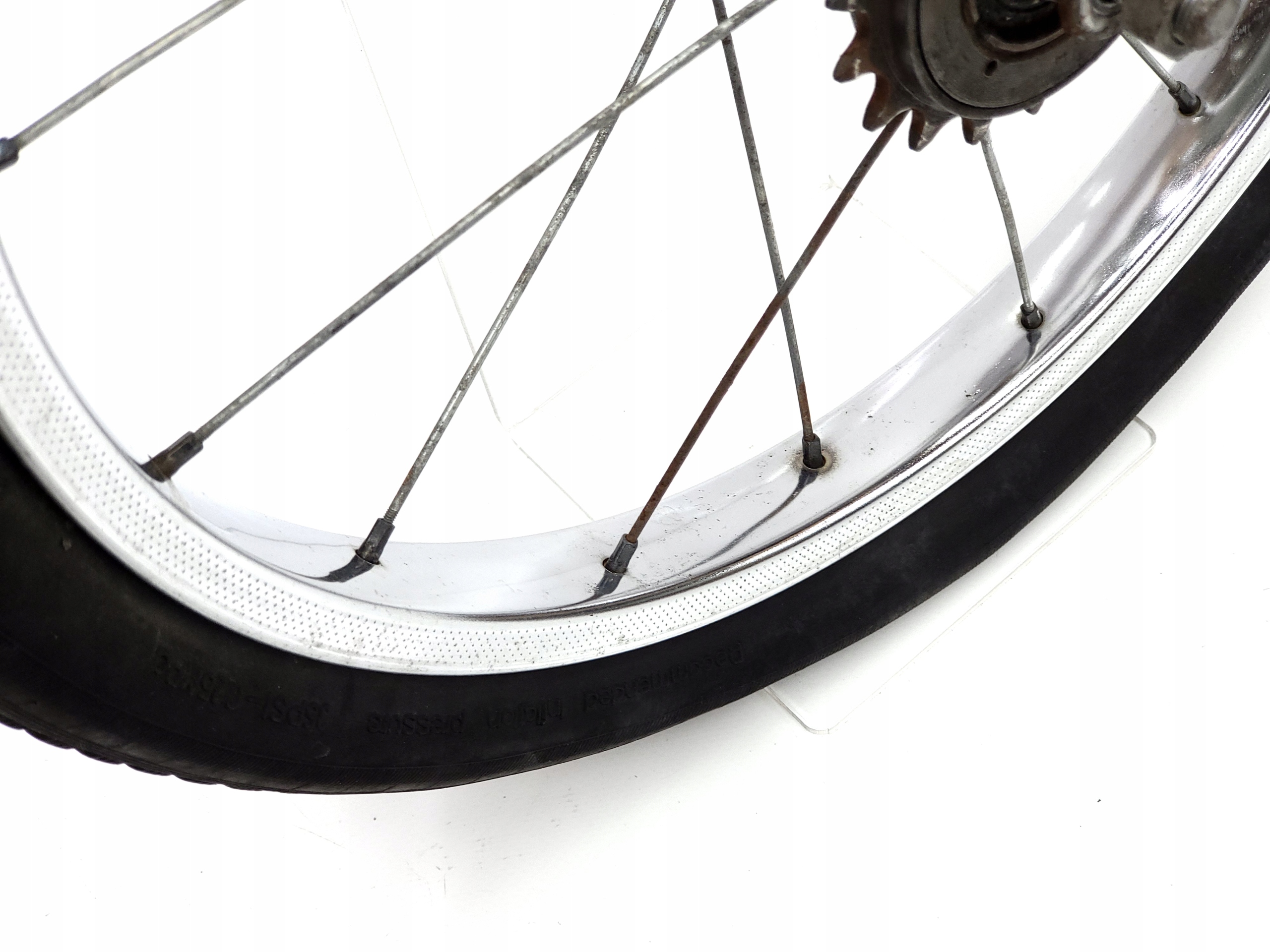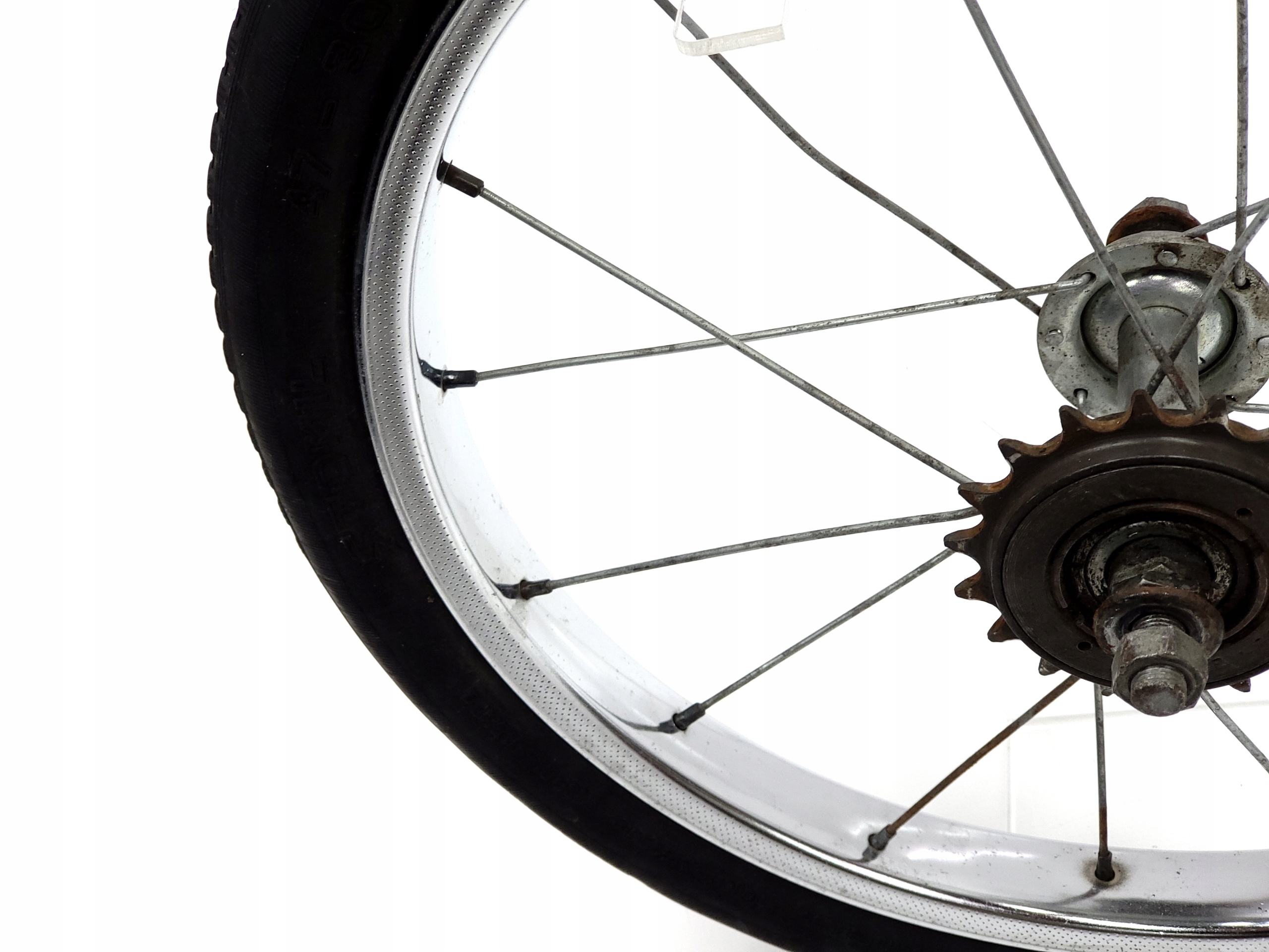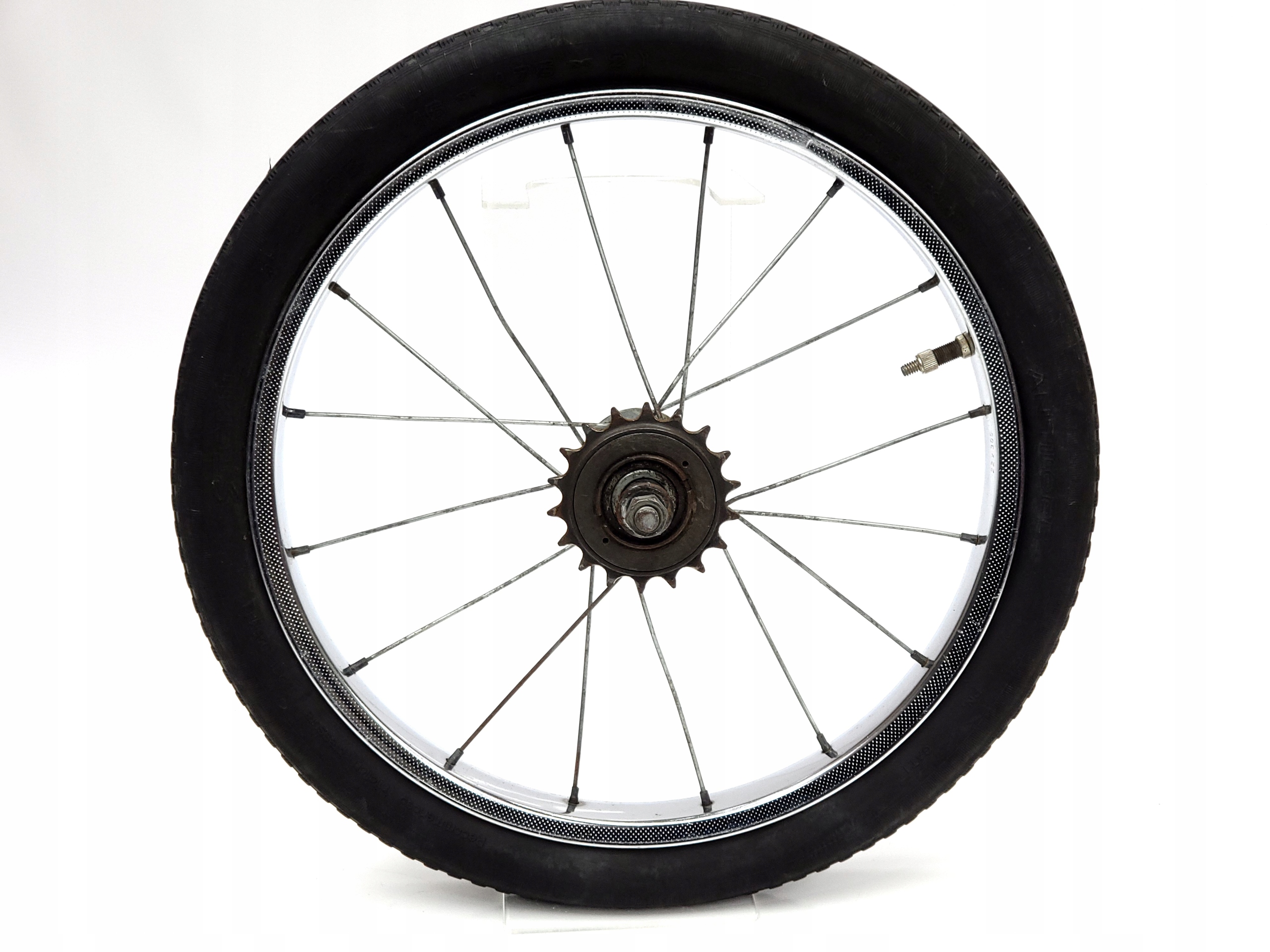 Заднє колесо 16x1.75 Протилоп для ромету для універсальних велосипедів тощо з вільним колесом. Делікатні поверхневі крапки з корозійним ободом, маточин без млявки, одна крива. Приємна шина з 1997 року.