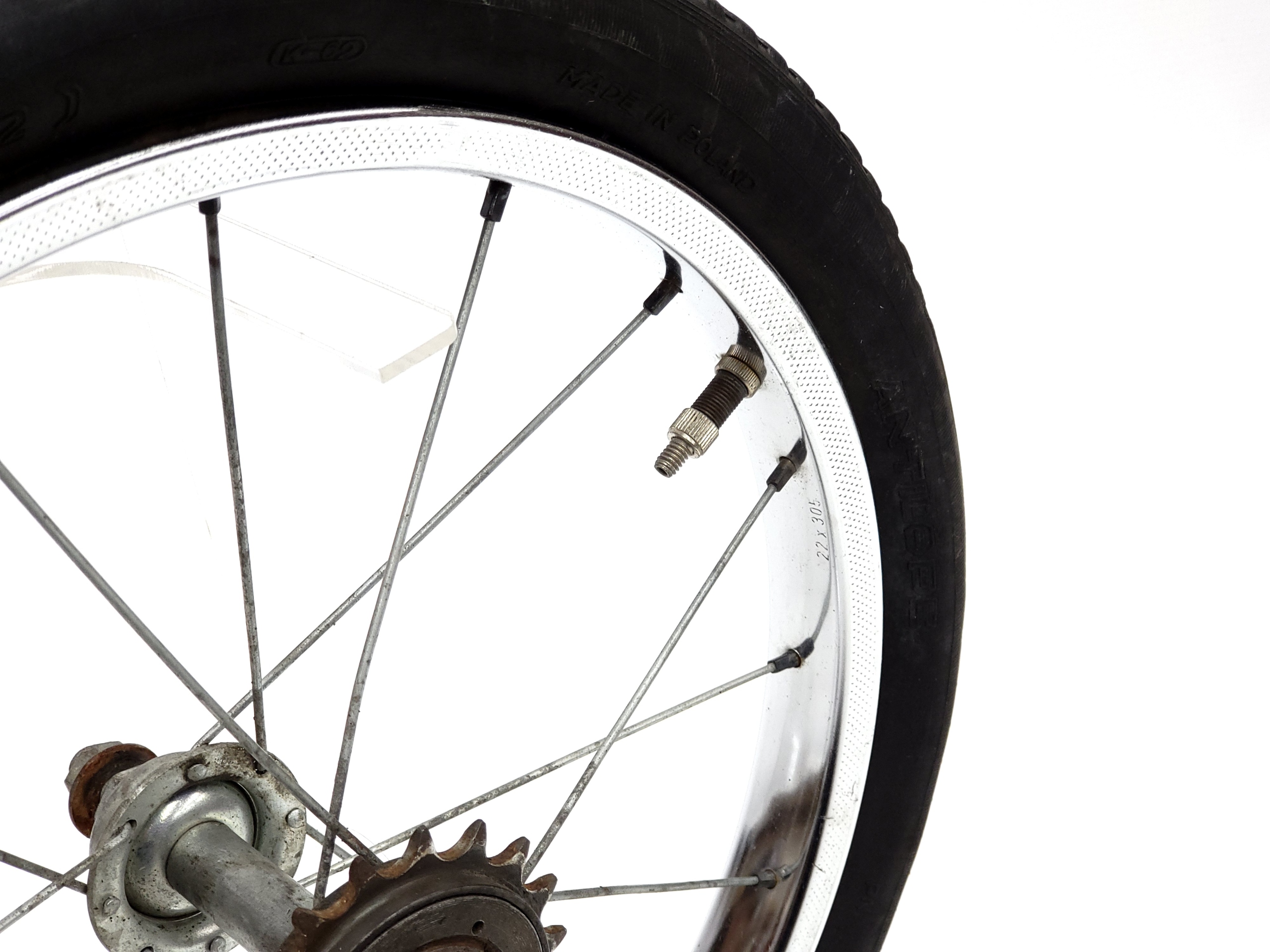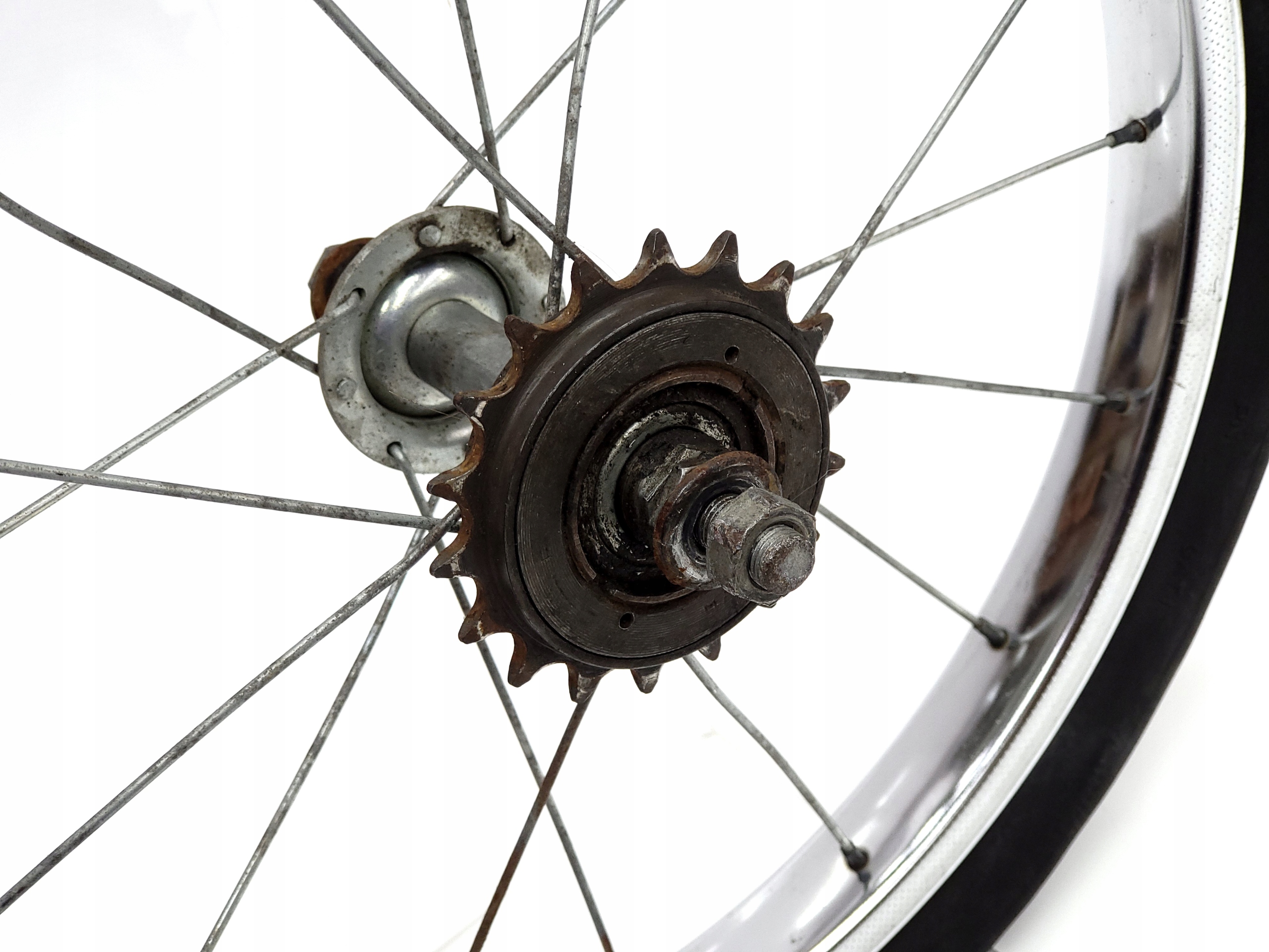 Заднє колесо 16x1.75 Протилоп для ромету для універсальних велосипедів тощо з вільним колесом. Делікатні поверхневі крапки з корозійним ободом, маточин без млявки, одна крива. Приємна шина з 1997 року.