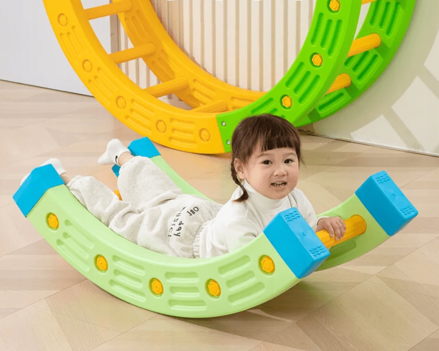 Колесо обладнано ручками, які полегшують дітям лазіння та утримання рівноваги під час гри. Завдяки своїй конструкції колесо можна катати, повертати або використовувати як пристрій для вправ рівноваги. Міцна та стабільна конструкція забезпечує безпеку та водночас створює можливість для творчої та активної гри.