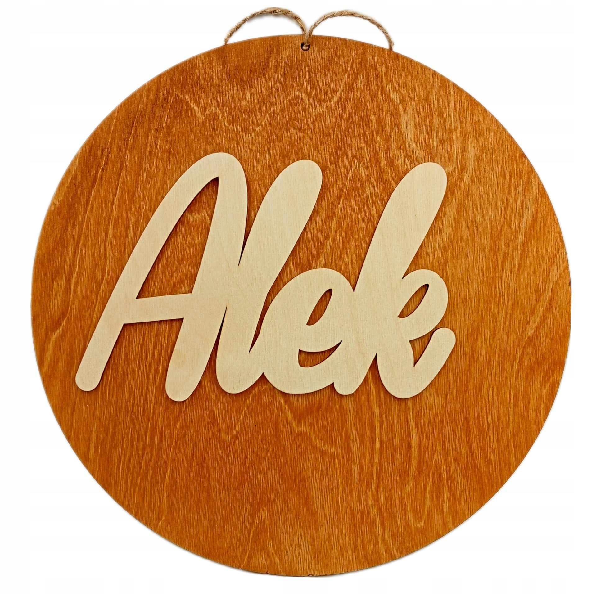 - Виріб: коричневий дерев’яний круг із іменем дитини