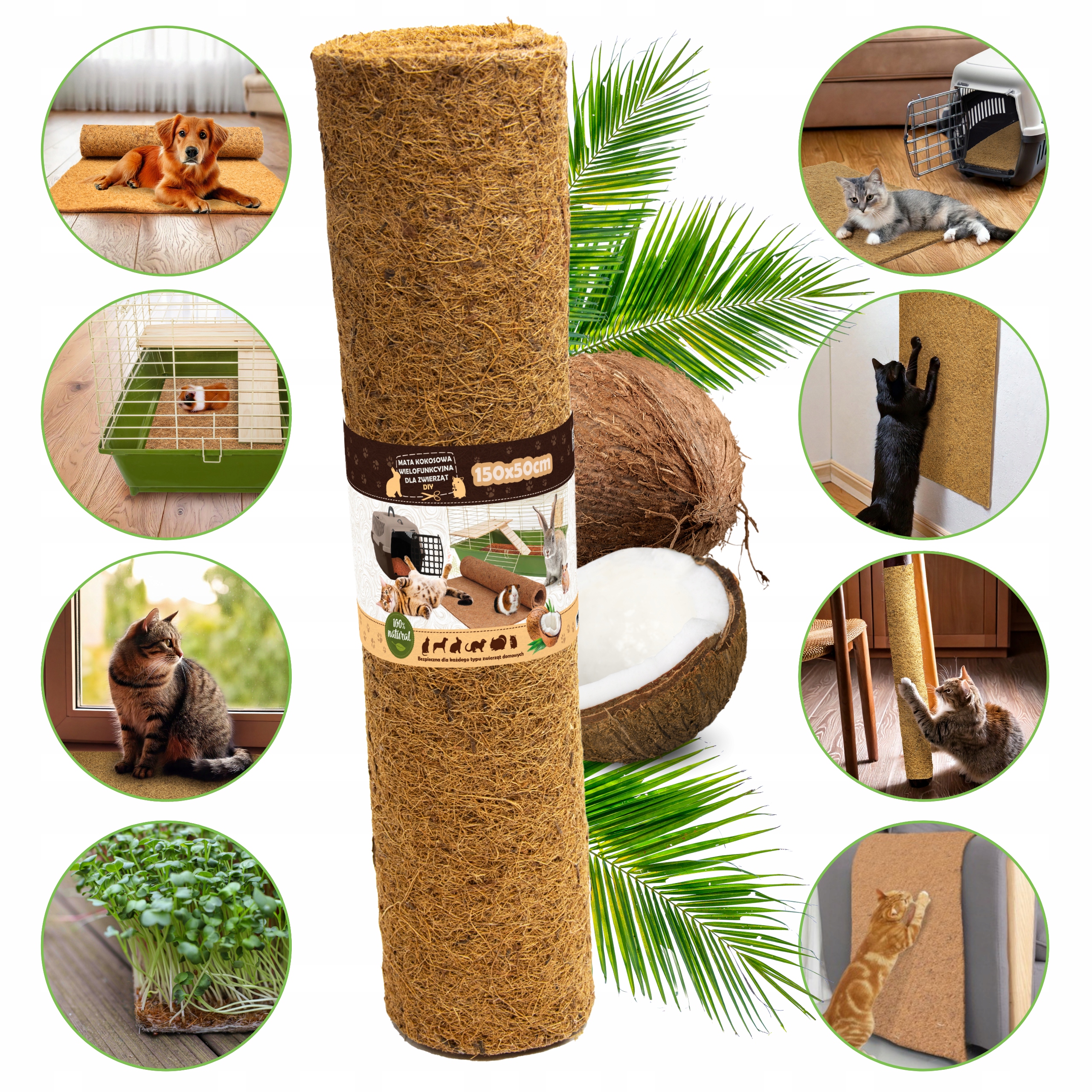 Наш кокосовий килимок є не лише чудовим рішенням для переноски, але також ідеальним якзручне ліжко для лежання! Ви можете використовувати його в клітці, ліжку або просто поставити на підлогу в улюбленому місці вашого вихованця. Завдяки своїй природній структурі він забезпечує приємне тепло і водночас є повітряним та гігієнічним, що сприяє здоровому відпочинку. Ідеально підходить для кроликів, котів, морських свинок та інших маленьких тварин, які люблять комфорт і натуральні матеріали!