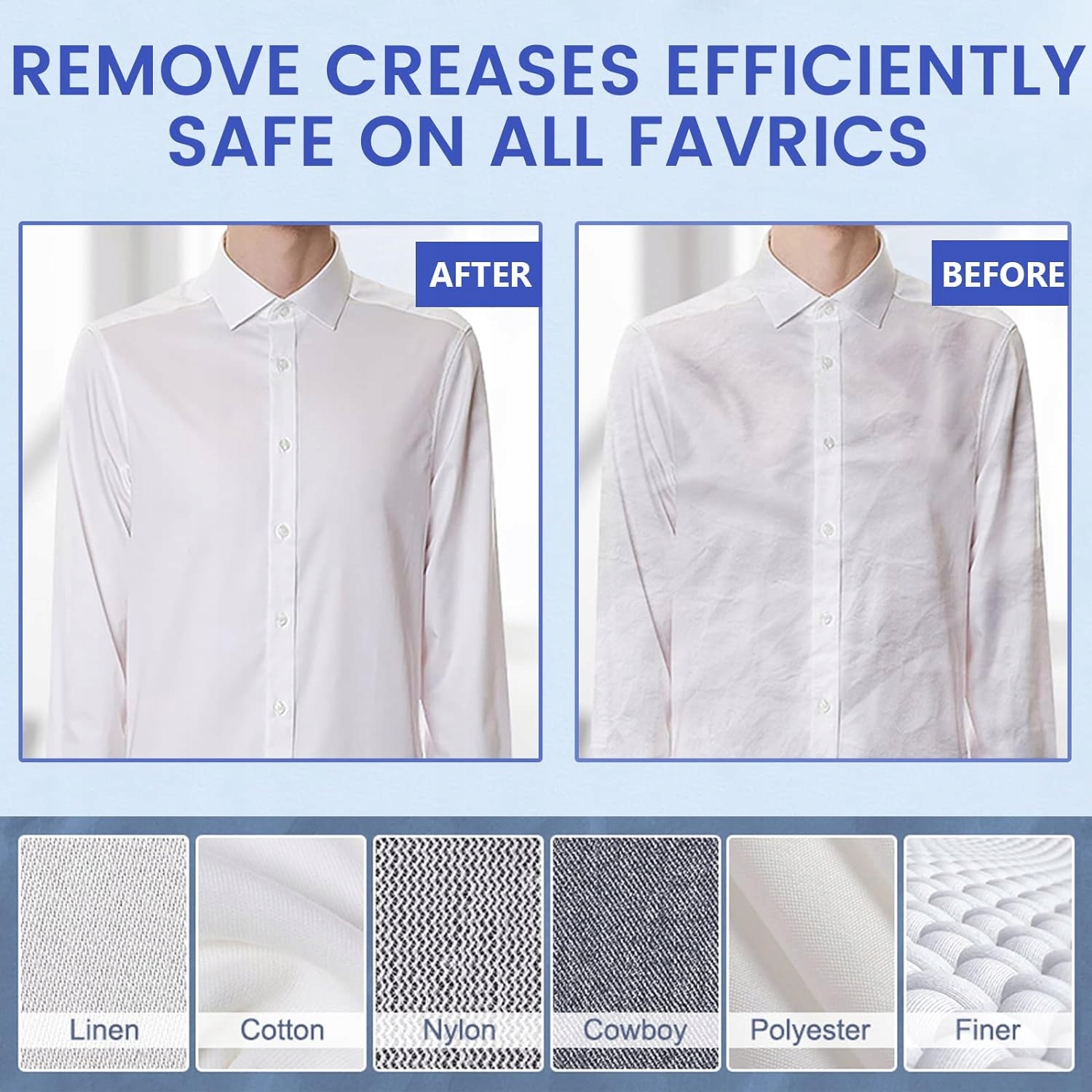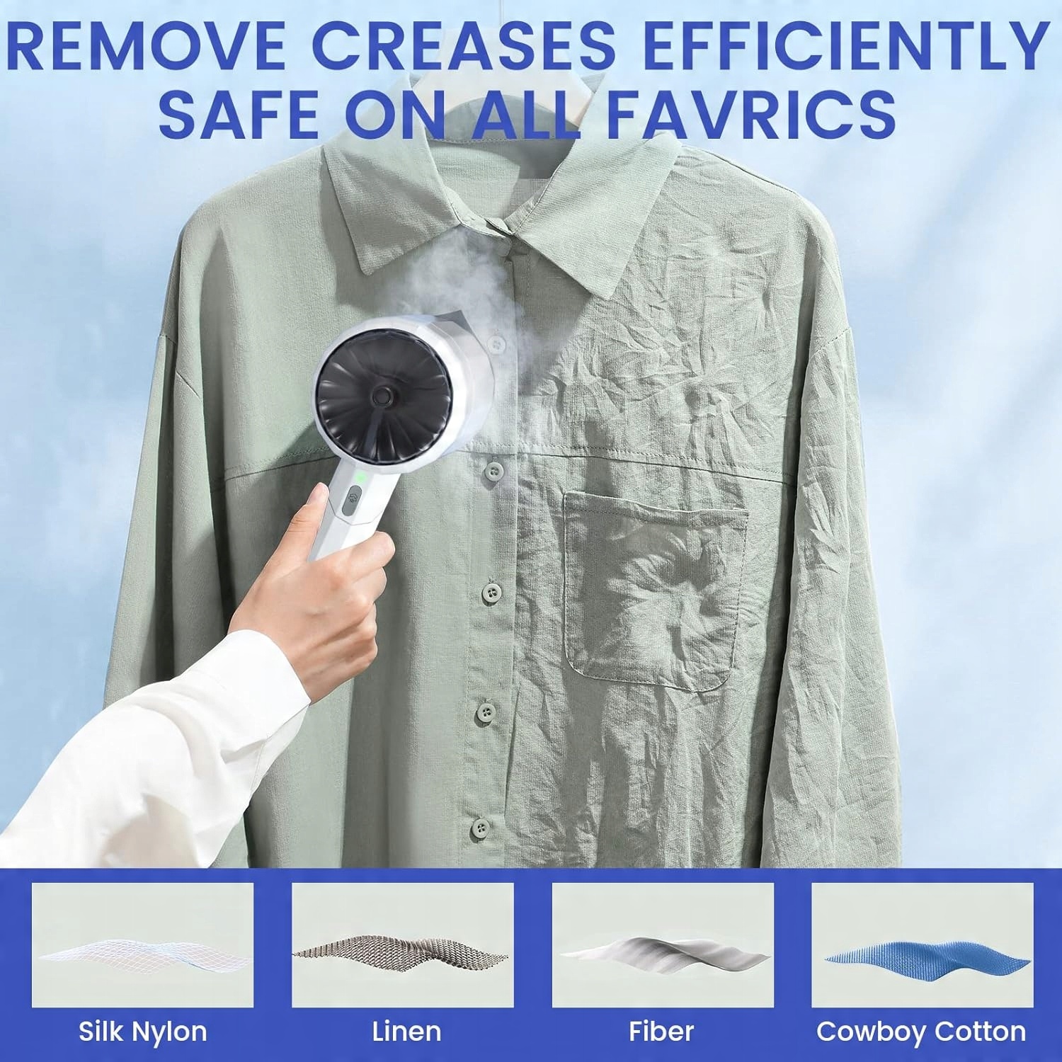 Ефективно видаляє зморшки, безпечний для всіх тканин. 1500 Вт із швидким нагріванням 20 с, наш ручний вертикальний відпарювач може випускати високотемпературне розпилення 25 г/хв , безпечний для використання на всіх тканинах. Він може ефективно усунути складні зморшки та глибоко очистити всю бавовну, вовну, шовк, волокна та тканини, не пошкоджуючи одяг.