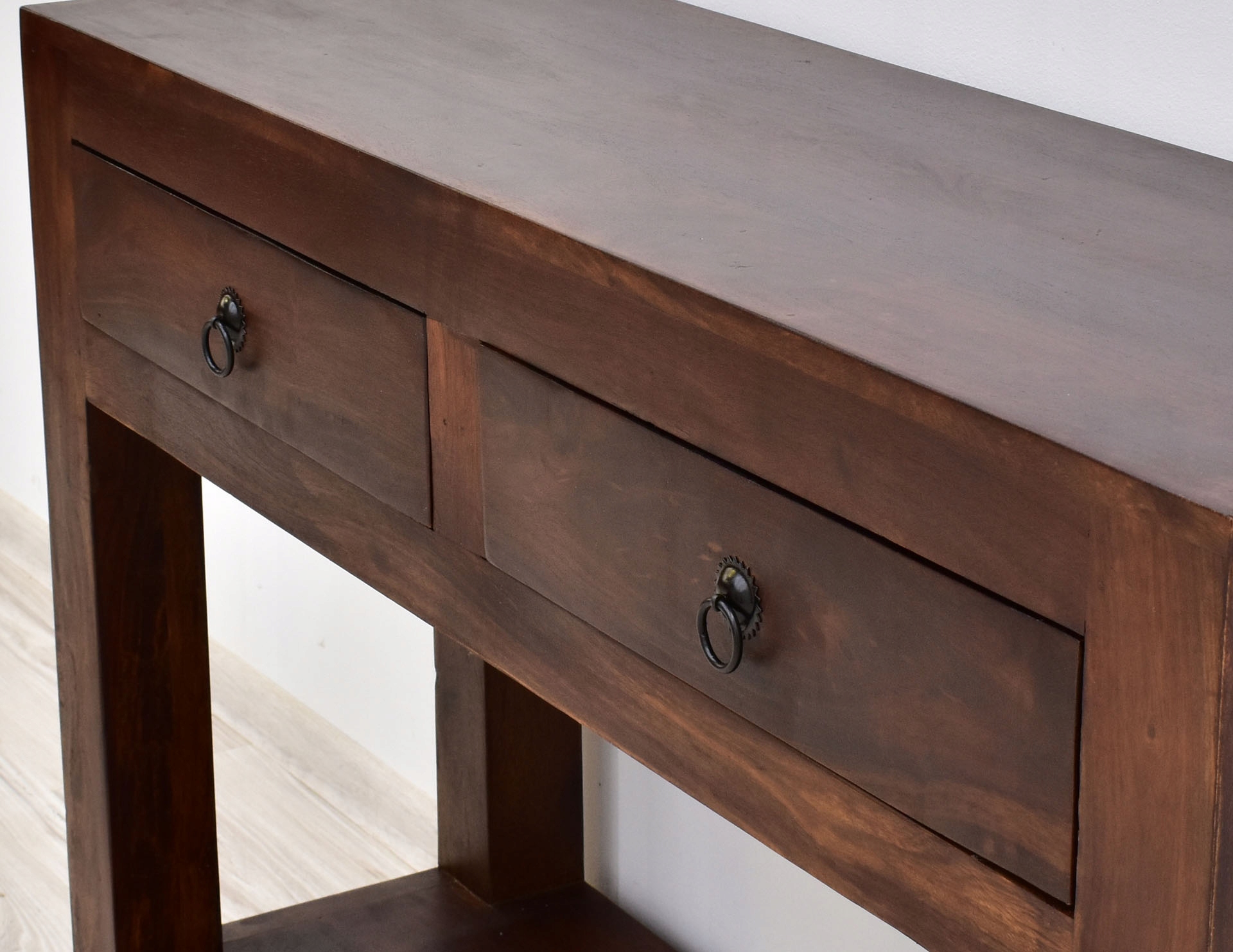 Колоніальна консоль тверда деревина індійська палісандр темно -коричневий 2 ящики