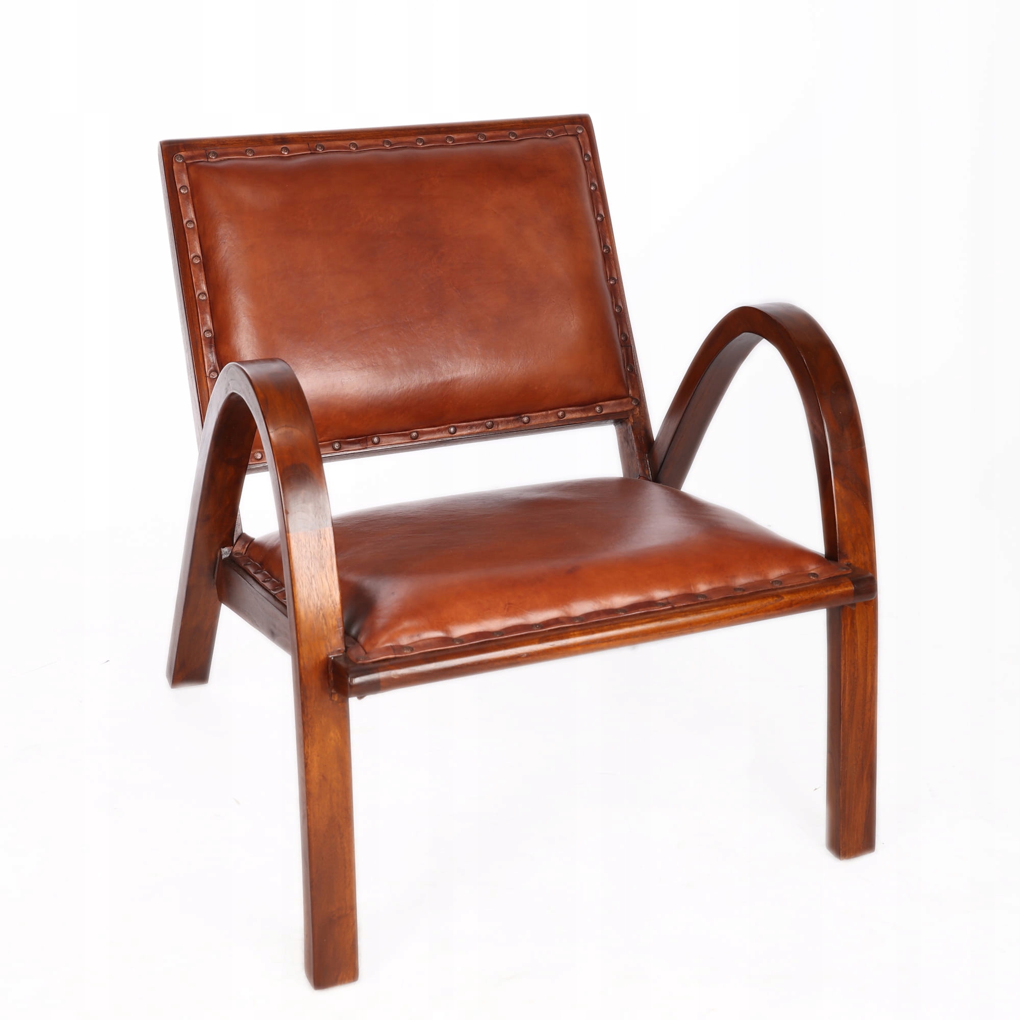 Це старовинне шкіряне крісло - це квінтесенція колоніального та ретро -стилю. Дерев’яна рама з зігнутою формою та коричневою шкірою утворюють витончене ціле. Це предмет меблів, який привертає увагу і додає характеру в інтер’єрі.
