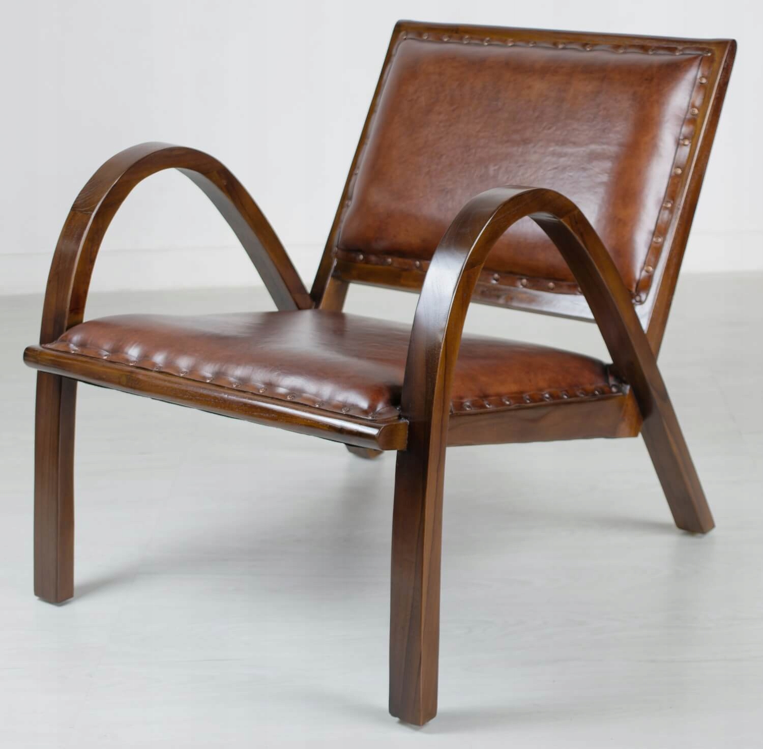 Колоніальне дерев’яне крісло з шкіряною оббивкою