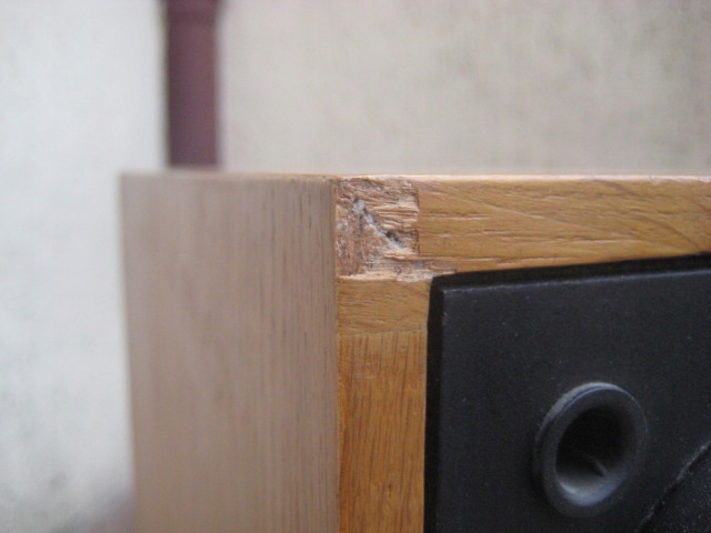Колонки (як ви можете бачити на фото :-). Шпон на одній колонці ззаду порваний. У одного з них відірваний задній кут. Те, що я показав на останніх фотографіях.'