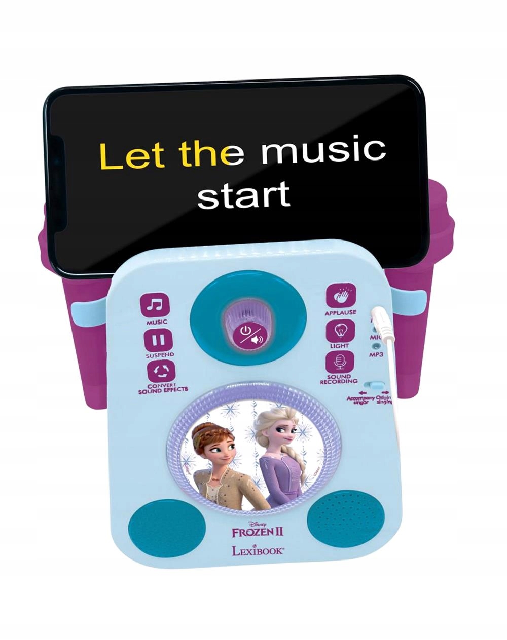 * Чудовий музичний динамік із підсвічуванням Frozen для співу годинами наодинці або в дуеті з двома мікрофонами!