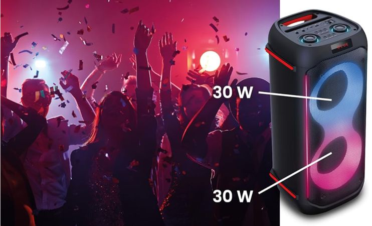 Аудіосистема для вечірок PS-60 вражає чудовим звучанням. Завдяки потужності 2 x 30 Вт RMS він забезпечує потужний і автентичний звук, який змусить будь-яку вечірку роком. Незалежно від того, віддаєте перевагу мелодійним пісням або басовим пісням - чистий і динамічний звук PS-60 порадує вас і ваших гостей