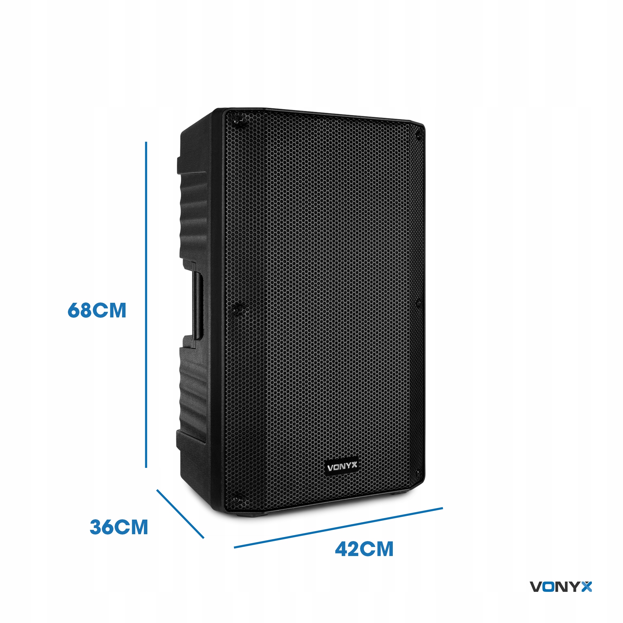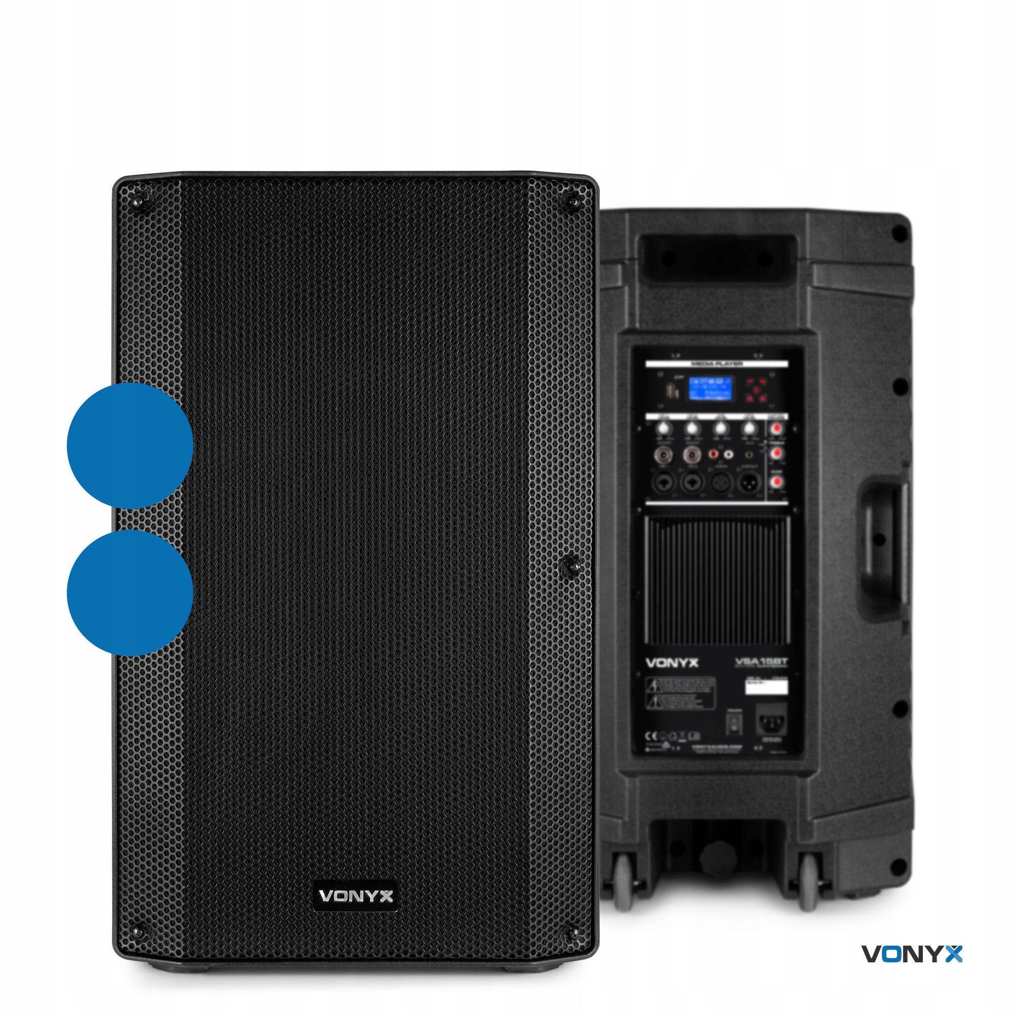 Корпус VSA15BT виготовлено з дуже міцного ABS-пластику з формованими ручками та колесами. Це робить динамік ідеальним для мобільних або тимчасових застосувань. Унизу є циліндр (отвір у дні), тому динамік також можна розмістити на штативі чи настінному кріпленні.