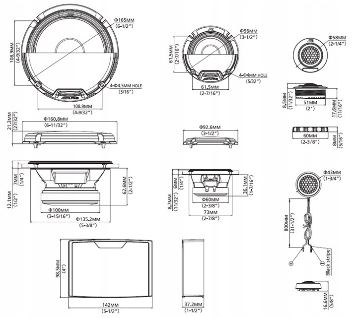 - НЧ-динамік 16,5 см (2 шт.) / СЧ-динамік 9,6 см (2 шт.) / Твітер з жорстким куполом 4,3 см (2 шт.)