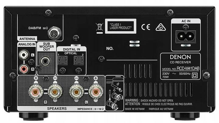 Використовуються високоякісні термінали гучномовців, додатково з виходом попереднього підсилювача для сабвуфера (pre-out), а також сам RCD-M41 оснащений доп