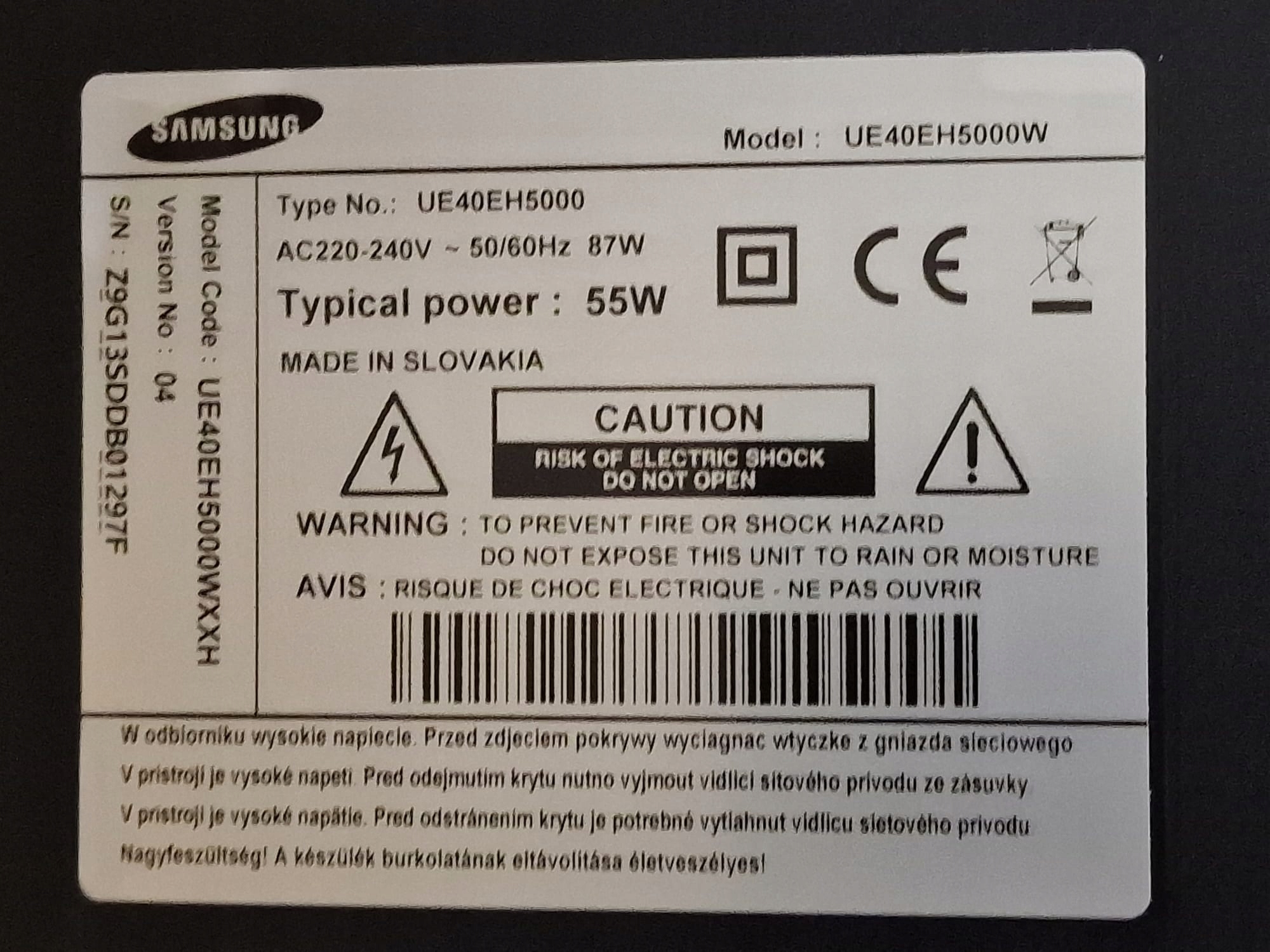 Модель телевізора: SAMSUNG UE40EH5000W