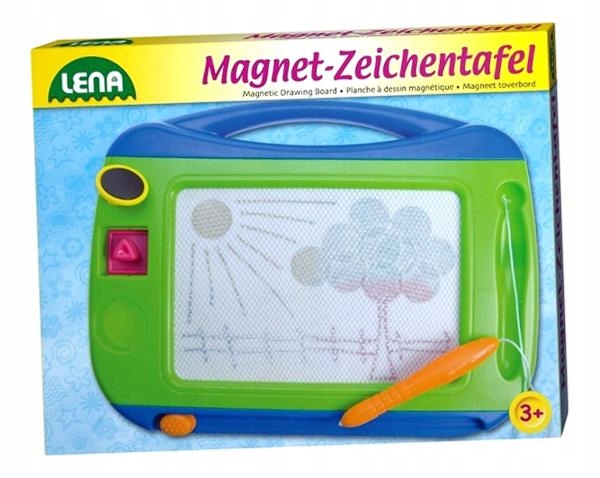 Магнітний маркер зеленого кольору з синіми та помаранчевими елементами, ширина 32 см. Цей продукт є інноваційним, оскільки отримане зображення є барвистим. Додатково в набір входять 2 штампи різної форми. Щоб видалити зображення, просто перемістіть повзунок під дошкою по всій її довжині. Іграшка має зручну ручку для перенесення і спеціальну ручку для малювання. Іграшка призначена для: дітей від 3 років.