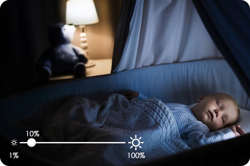 Залежно від ваших потреб, ви можете встановити кольорове світло, щоб створити настрій у кімнаті, або використовувати біле світло, встановивши його температуру. Тепле біле світло ідеально підходить для вечірнього читання, нейтральне світло для повсякденного життя, а холодне (пробудження) світло, напр. під час навчання.