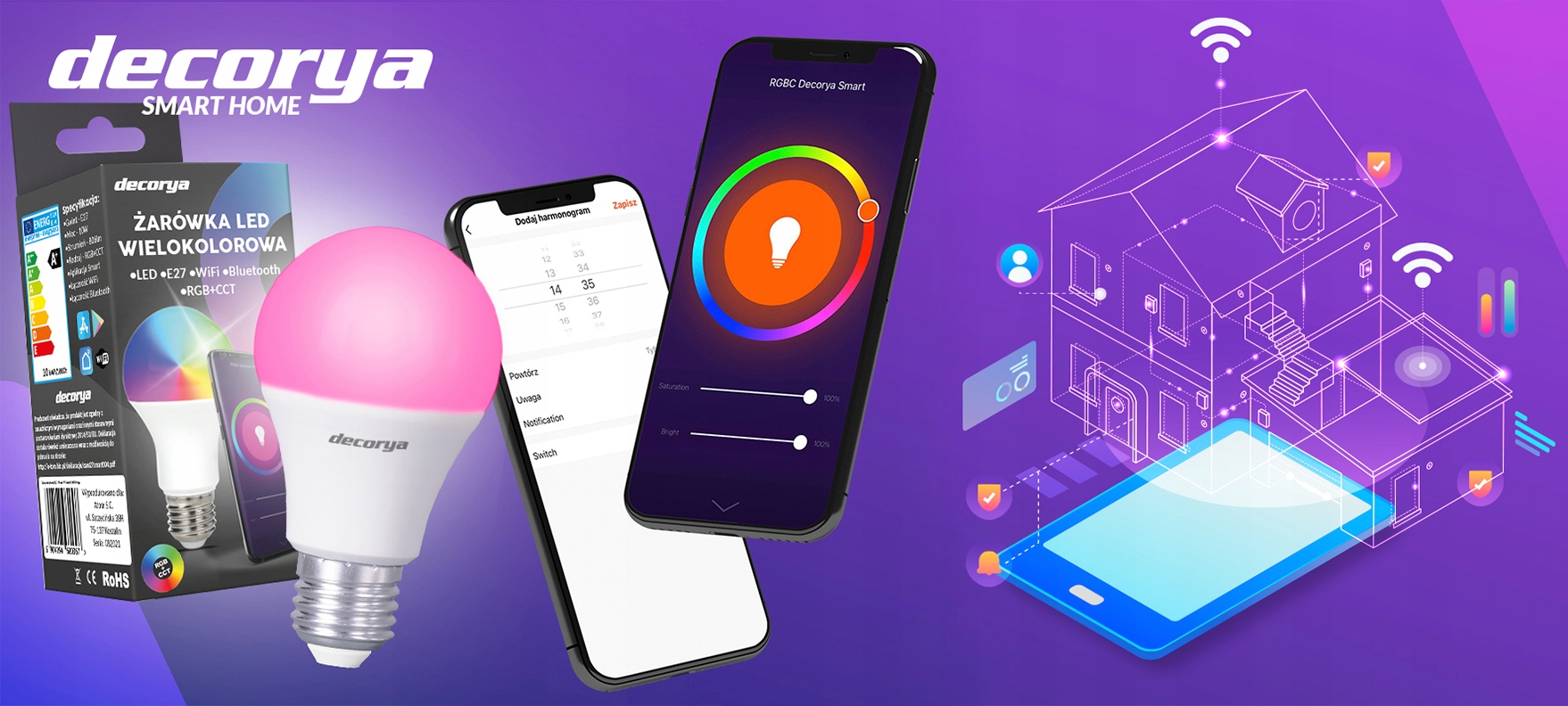 Лампочка Decorya є ідеальним рішенням для людей, які хочуть почати свою пригоду з SMART пристроїв або чудового розширення розумного дому. Керуйте освітленням у своєму домі з будь-якої точки світу, встановлюйте розклади, залежності та налаштовуйте освітлення відповідно до своїх потреб.