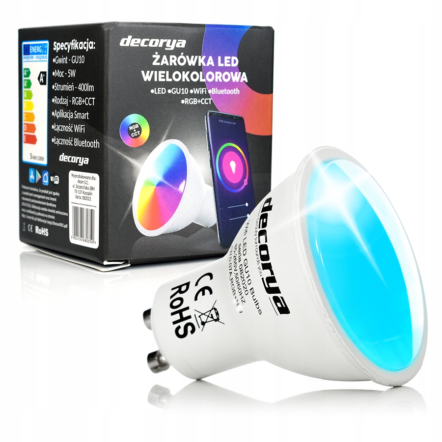 КОЛЬОРОВА СВІТЛОДІОДНА ЛАМПА RGB + CCT GU10 5W WIFI З КЕРУВАННЯМ СМАРТФОНУ TUYA