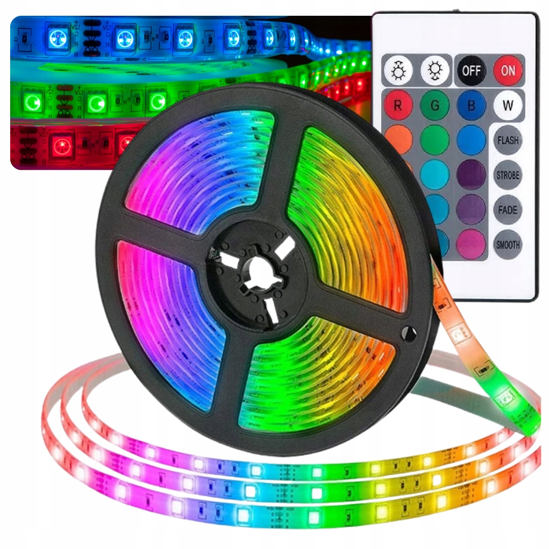 КОЛЬОРОВА СВІТЛОДІОДНА СТРІЧКА 5M RGB З ДИСТАНЦІЙНИМ, водонепроникна СВІТЛОДІОДНА СТРІЧКА