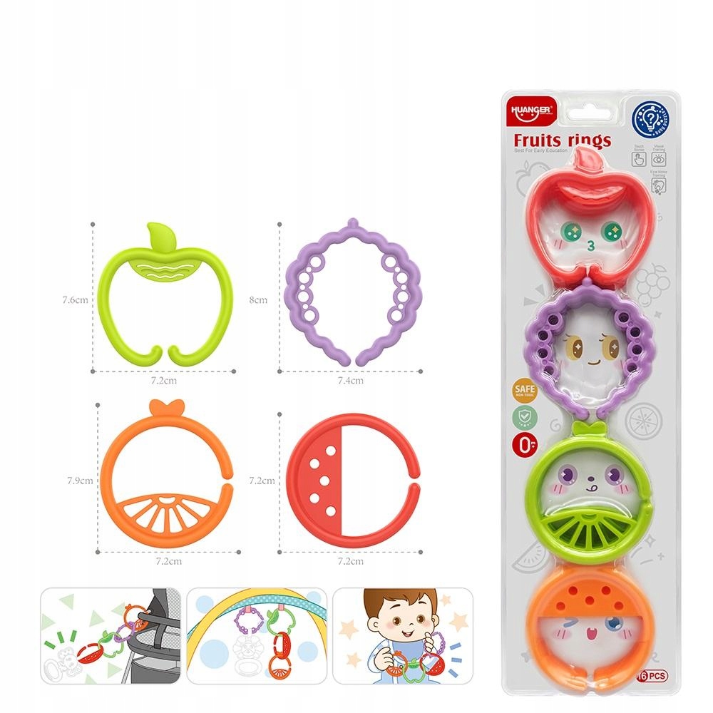 Різнокольорові ланки у формі фруктів, які використовуються для з’єднання та прикріплення іграшок до ліжка, коляски чи навчального килимка.
