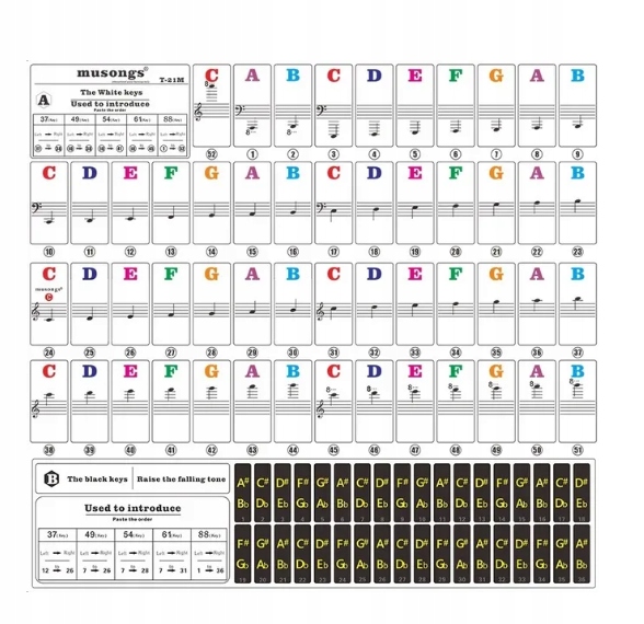 - наклейки для 37, 44, 49, 54, 61, 76 і 88-клавішних інструментів