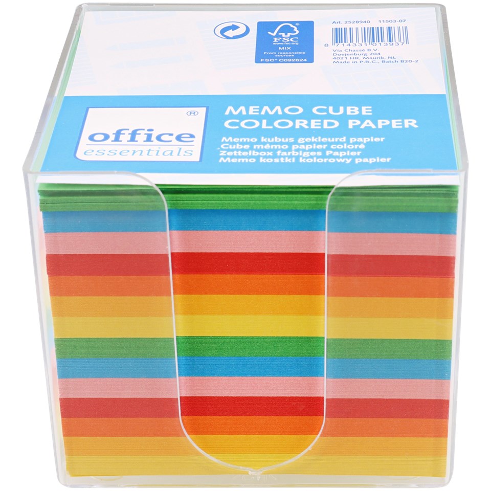 Блокнот із наліпками різних кольорів у прозорому кубі.