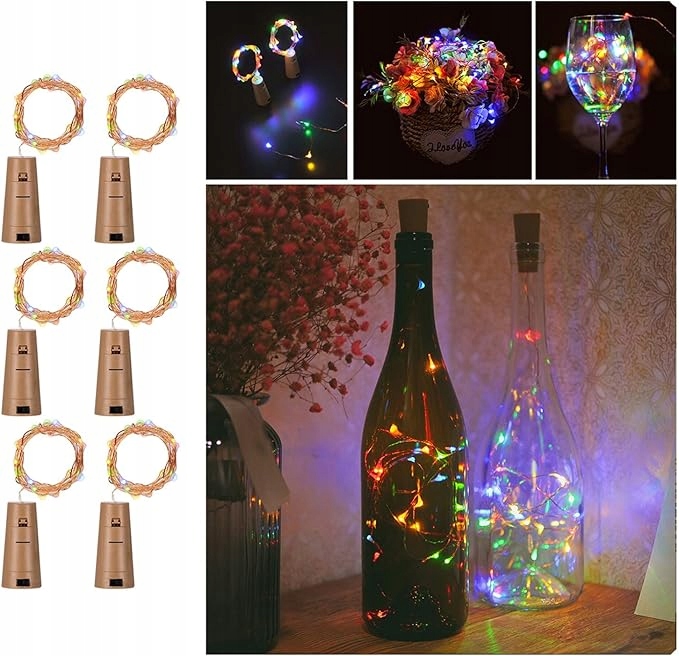 Кольорові світлодіодні лампи на дроті з пробкою – 6 комплектів, 20 LED кожна