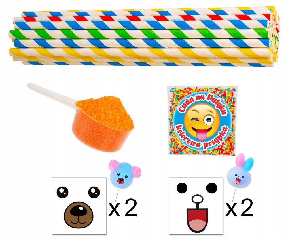 НАБІР 12x 100г Цукор для солодкої вати 1,2 кг КОЛЬОРОВІ СМАКОВІ ПАЛИЧКИ