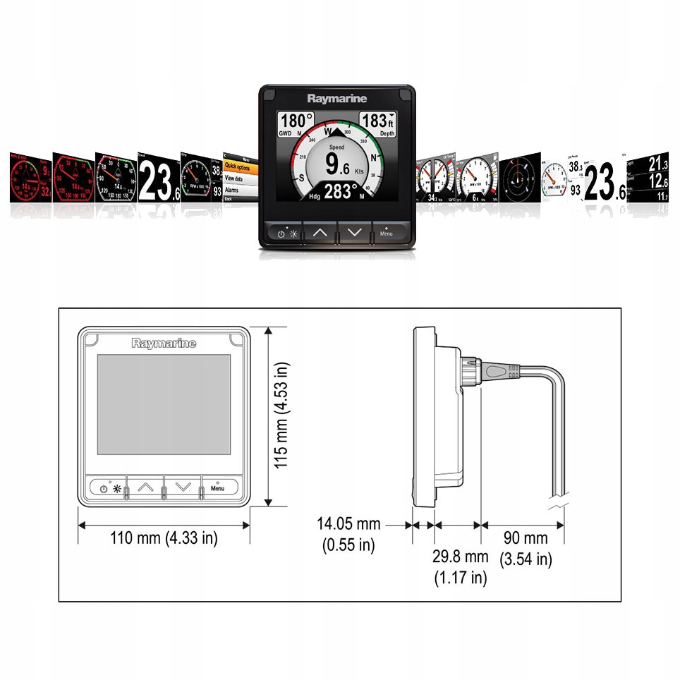 Інструмент Raymarine I70s, покажчик. Він дозволяє відображати багато даних, що передаються від датчиків і навігаційних приладів. Має широкі можливості відображення цифрової, аналогової та графічної індикації. Висока якість виготовлення, великий, супер яскравий 4,1" РК-дисплей забезпечує чудову видимість показань.