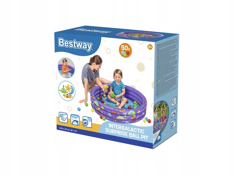 Барвистий космічний басейн не дасть вам прохолоди в спекотні дні. Він складається з 3 рівних надувних кілець, які забезпечують стійкість усієї конструкції. Кожне кільце має блокатор, що перешкоджає витоку повітря. Басейн виготовлений з міцного вінілу товщиною 0,19 мм з оригінальним тисненим малюнком.