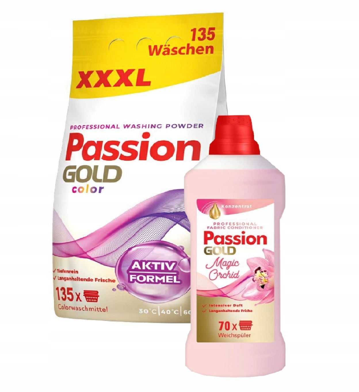 Професійний і дуже ефективний пральний порошок Passion Gold Color Aktiv Formel. Інноваційна миюча формула, що глибоко проникає в волокна.