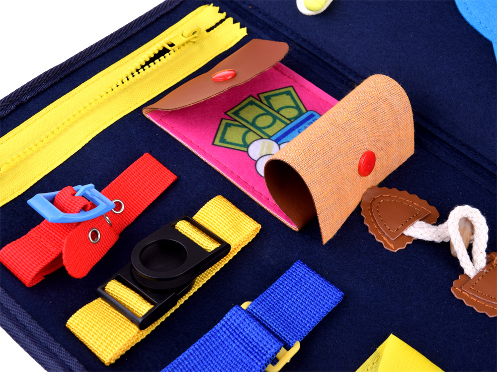 - Стань майстром маніпуляції з нашою книжковою іграшкою! Це м’яке диво з повсті, наповнене блискавками, застібками та таємничими кнопками, які чекають на ваші дослідницькі руки. Подивіться, скільки задоволення приносить відкриття та вивчення світу дотику. Усередині приховано багато атракціонів: блискавки, які швидко відкриваються, пряжки, які легко взяти, і таємничі засувки, які спонукають до дослідження. Ви чули про чарівну липучку, яка зберігає заховані скарби? Відкрийте для себе їх усіх і попрактикуйтесь у ручних навичках!