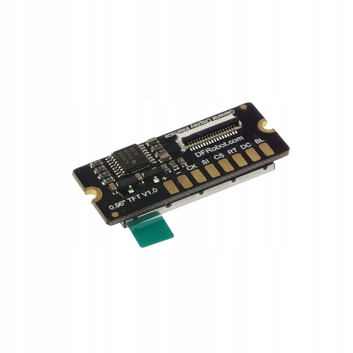 Модуль з 0,96" кольоровим TFT LCD дисплеєм. Він має роздільну здатність 160х80 пікселів і використовує контролер ST7735, а зв'язок з модулем здійснюється через інтерфейс SPI. Має підтримку інтерфейсу GDI. Завдяки невеликому розміру модуль добре працюватиме в дизайні невеликих пристроїв для відображення простих анімацій або інтерфейсів користувача. Документація та приклади доступні на веб-сайті продукту.