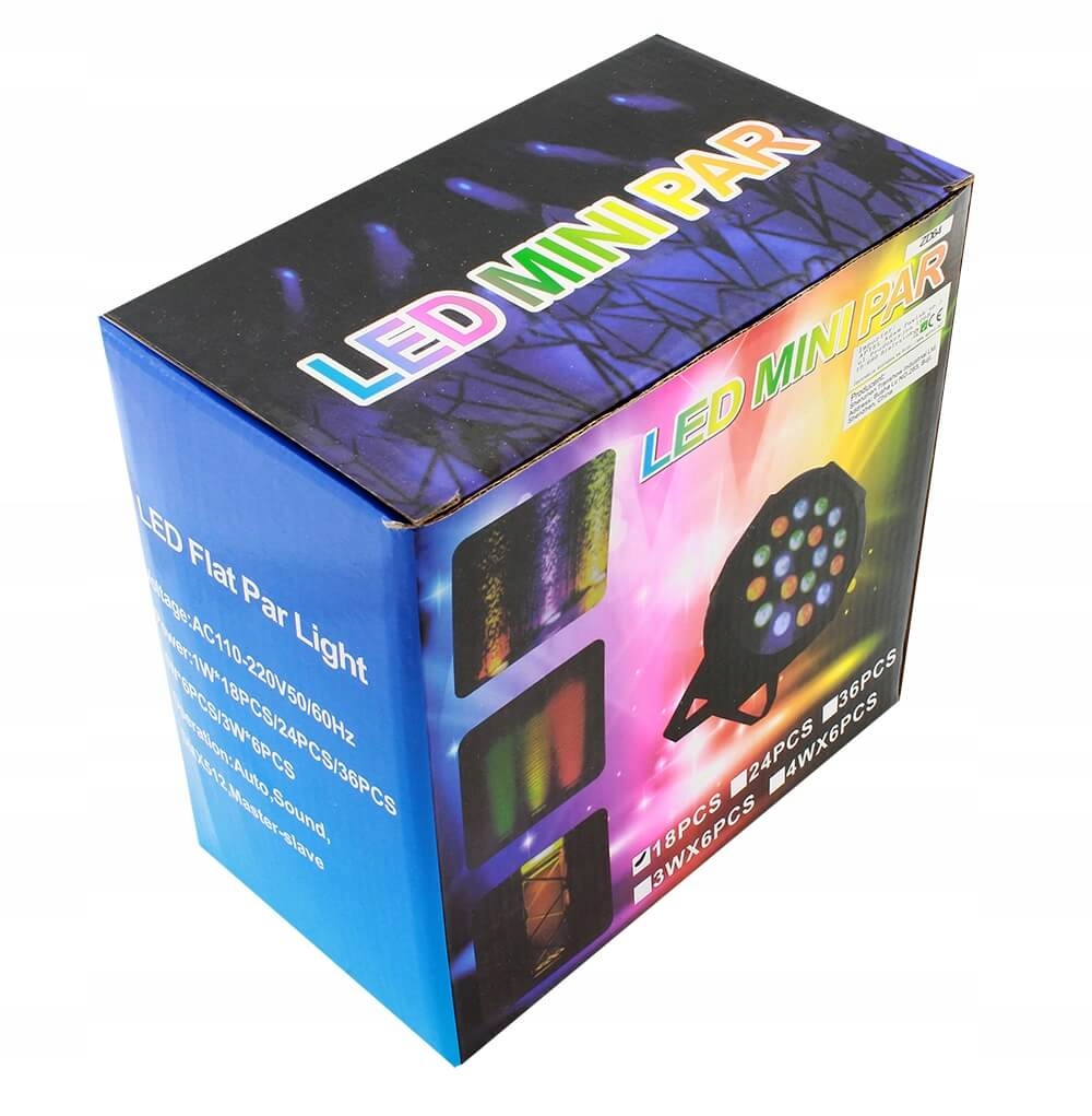 Дискотечні світильники - колорофон 18 діодів, 3 кольори RGB діодів з рамкою. Рефлектор оснащений вісімнадцятьма світлодіодами RGB потужністю 1 Вт кожен. Усі вони забезпечують потужне, дальнє світло! Завдяки широкому діапазону кольорів (RGB) він ідеально підходить як декоративне освітлення для діджеїв, музичних груп, вечірок, весіль і навіть клубів!
