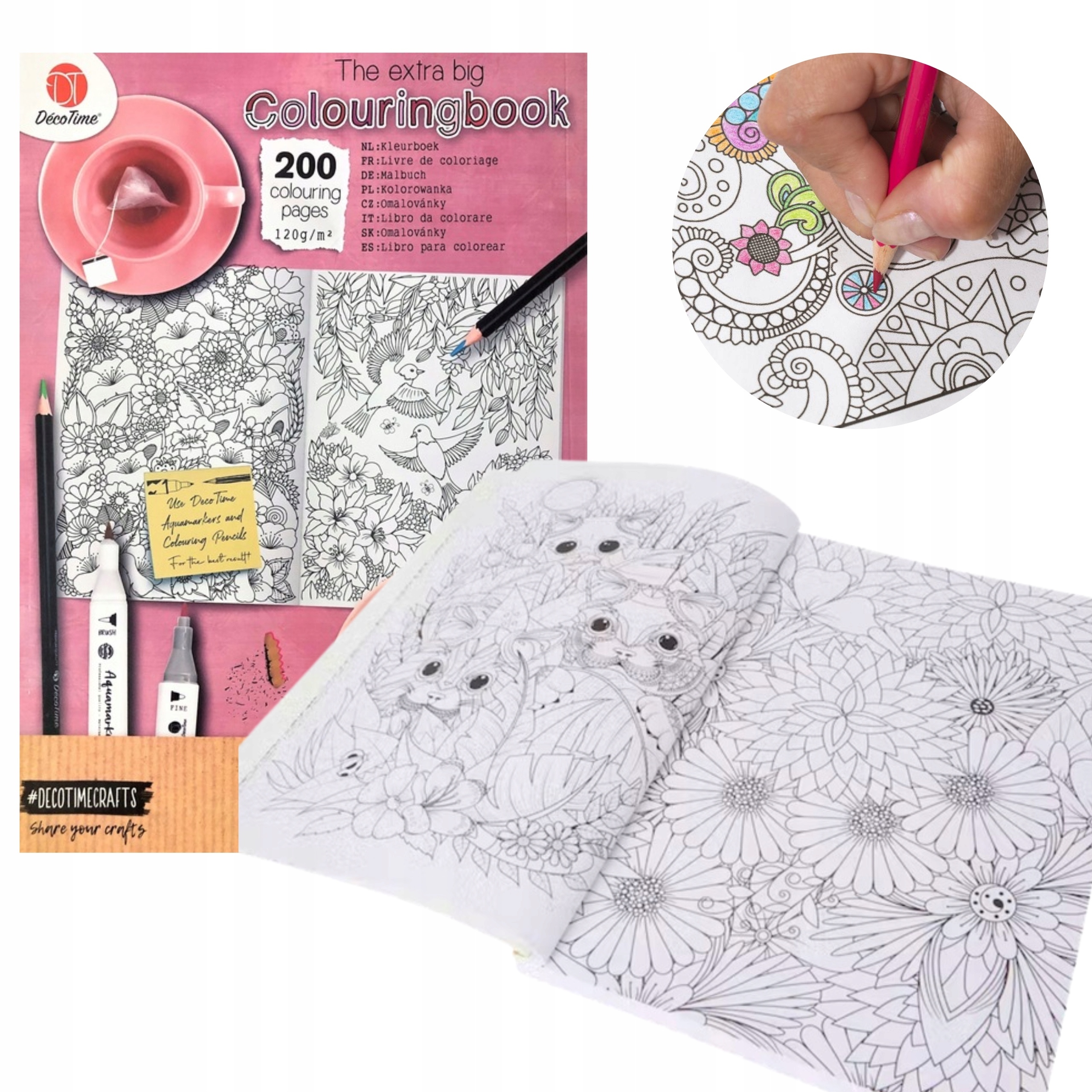 Мегавелика розмальовка від DecoTime — це 200 сторінок справжнього відпочинку. І в той же час це чудовий спосіб провести час разом з найменшими членами сім'ї. Різноманітні, казкові зображення в злегка мозаїчному стилі створюють справжню подорож до вашої власної уяви .